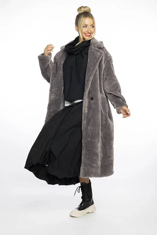 Šedý dámský plyšový oversize kabát Ann Gissy (AG1-J9172)