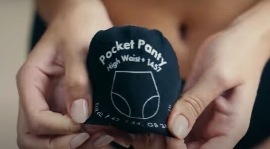 Kalhotky Pocket Panty Hipster mají skrytou kapsu, díky které je můžete proměnit v malý, přenosný obal.