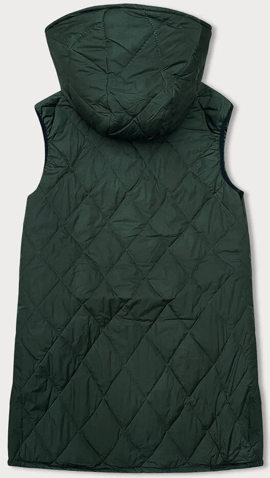 Prošívaná dámská vesta v army barvě s ozdobnou páskou (16M9118-136)