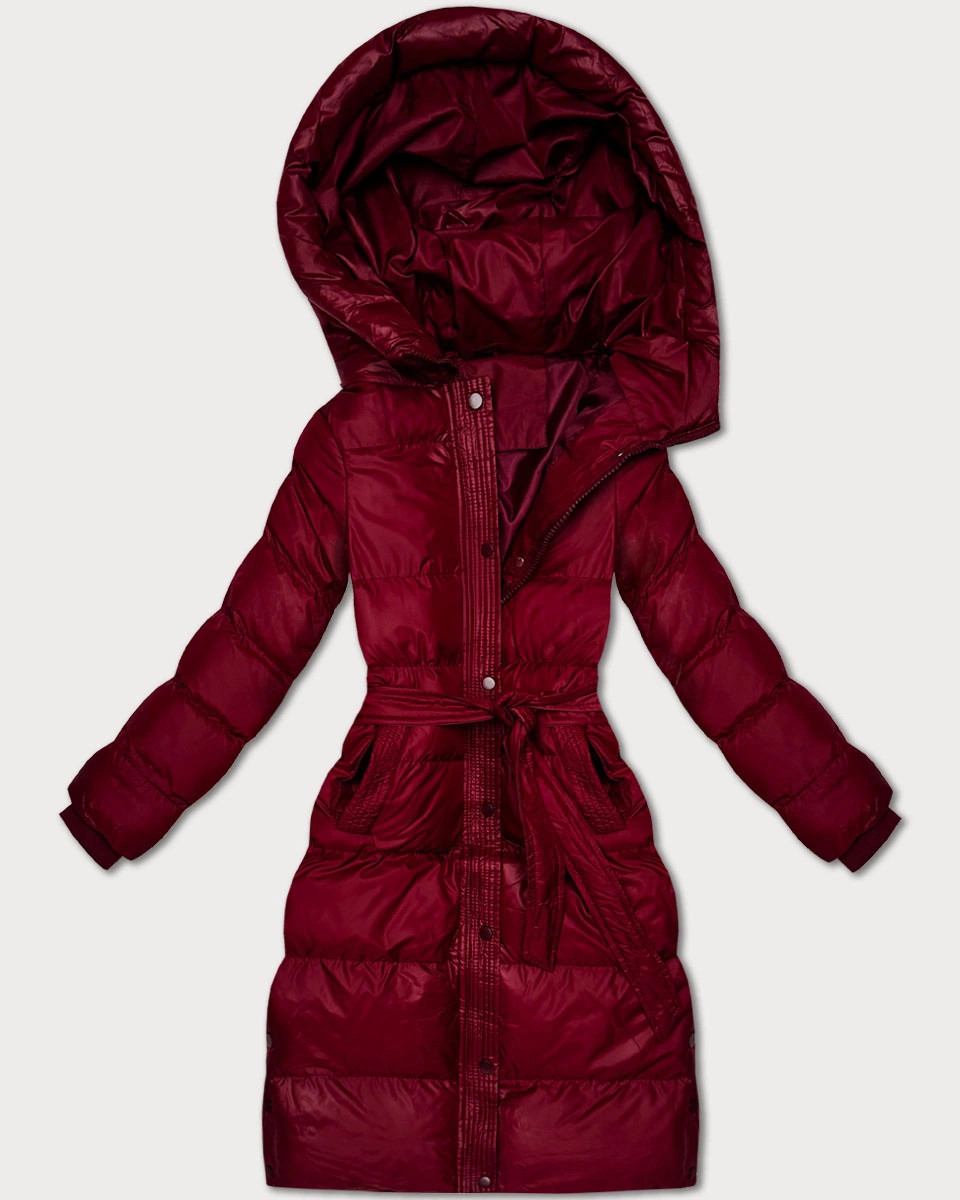 Prošívaná zimní bunda ve vínové bordó barvě s páskem J Style (5M3253-1)