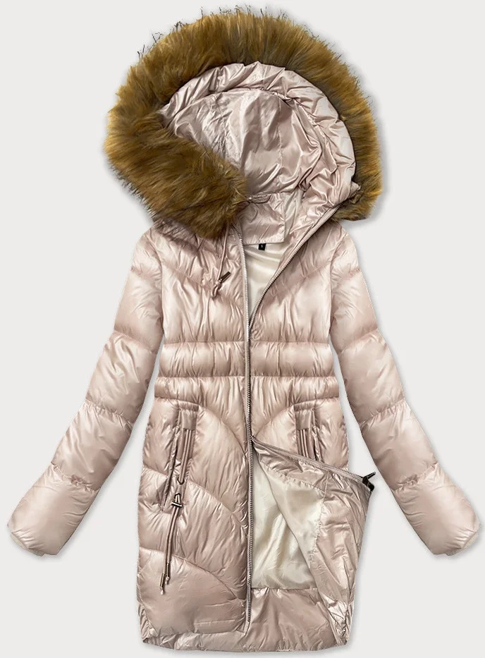 Přidání recenze k Jednoduchá dámská zimní bunda v perleťově růžové barvě s ozdobnými kapsami S'west (B8259-51)