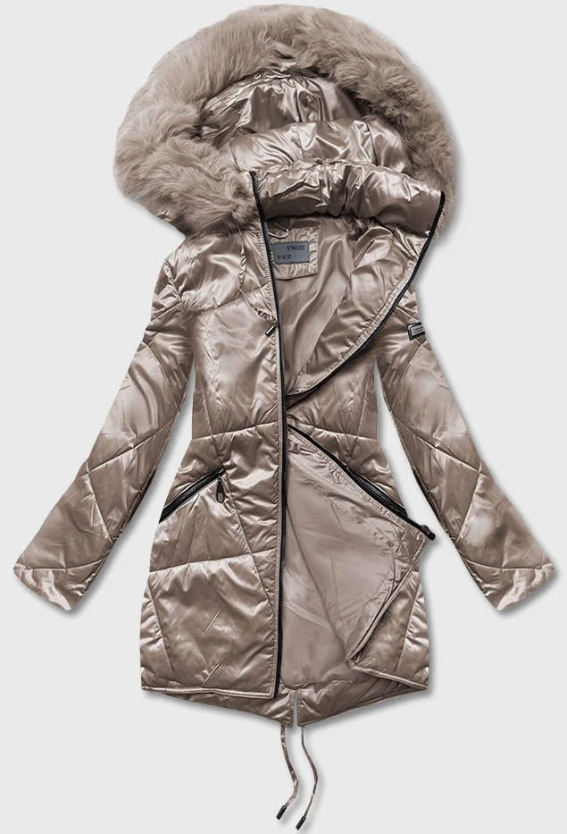 Béžová dámská bunda pro přechodné období s kapucí (b8091-12)