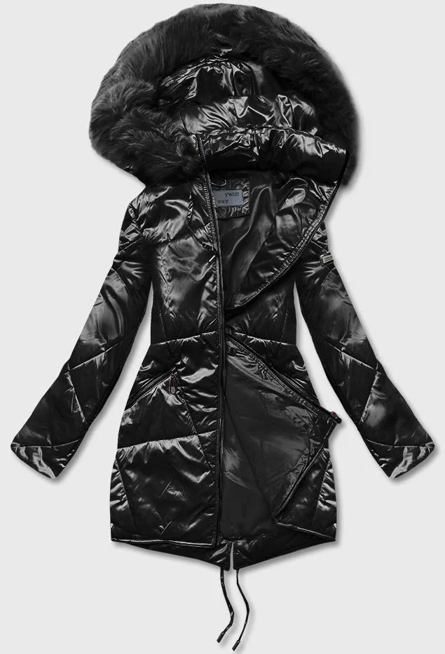 • Černá dámská bunda pro přechodné období s kapucí (b8091-1)