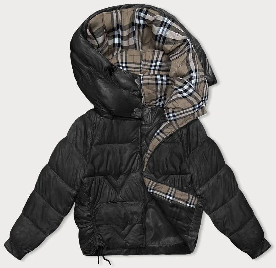 Černá dámská bunda pro přechodné období s károvanou podšívkou (842)