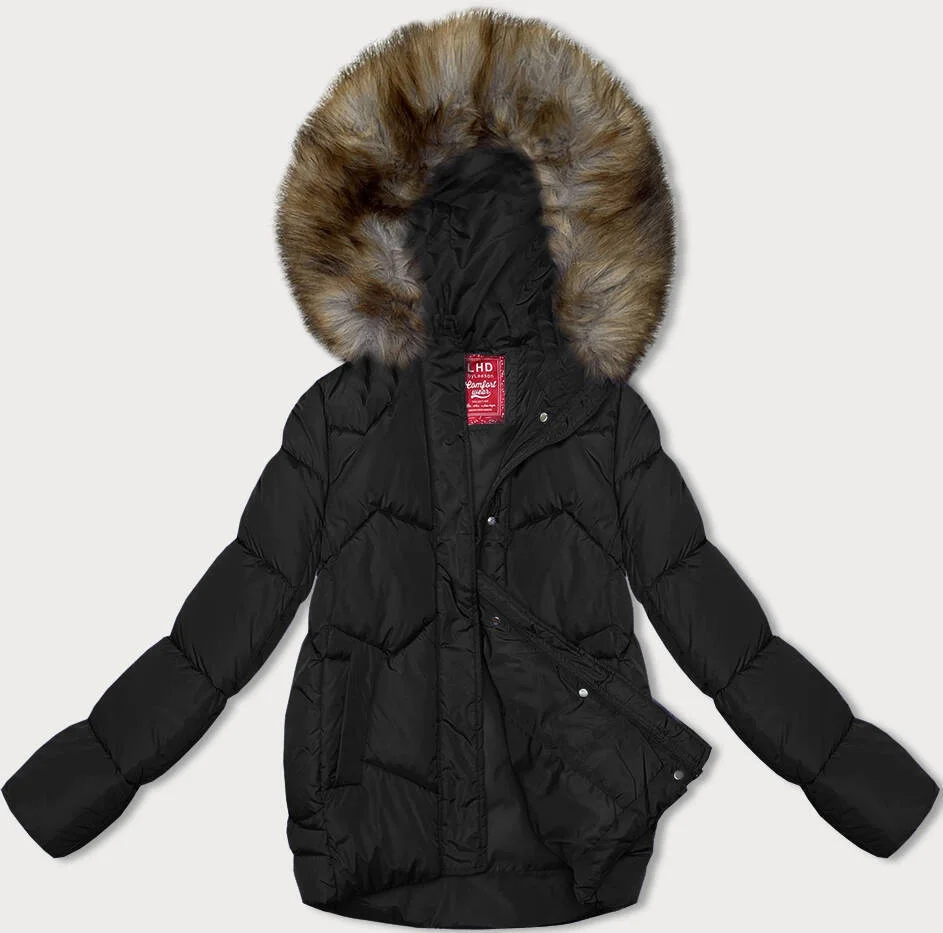 Černá bunda pro přechodné období s kapucí (LHD-23002)