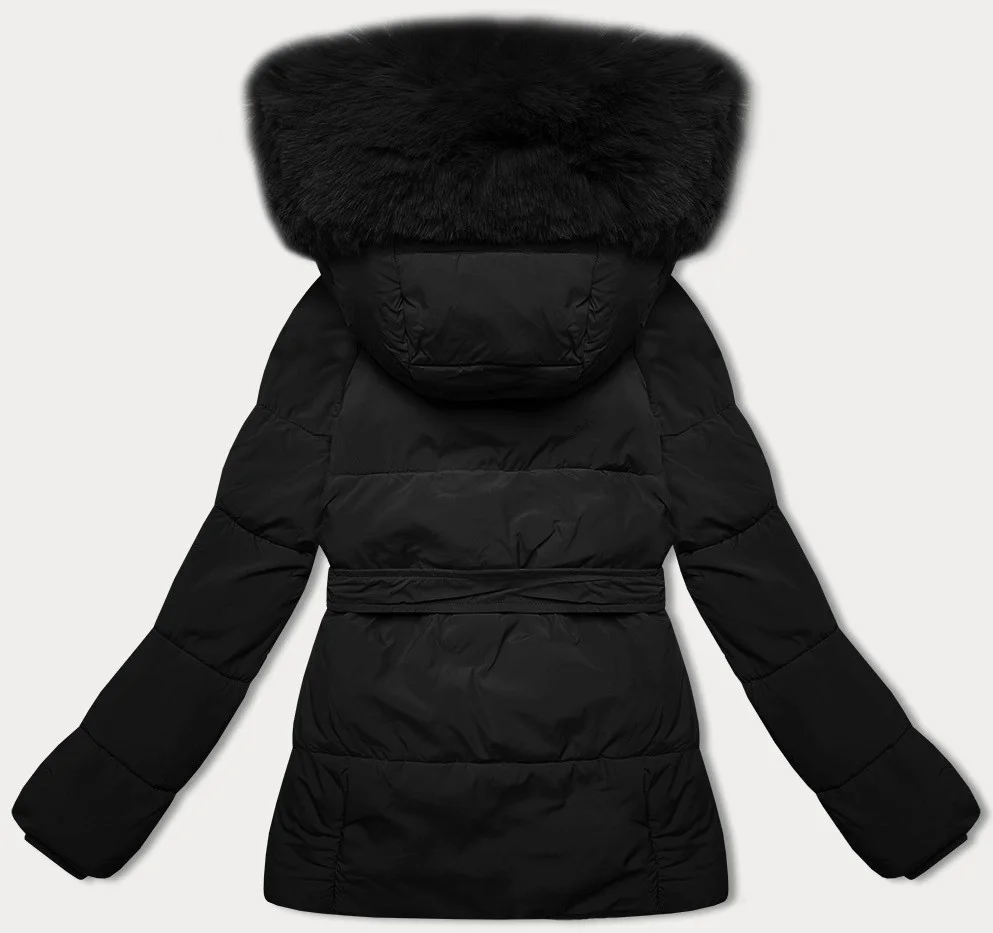 Černá dámská bunda pro přechodné období s páskem J Style (16M9183-392)