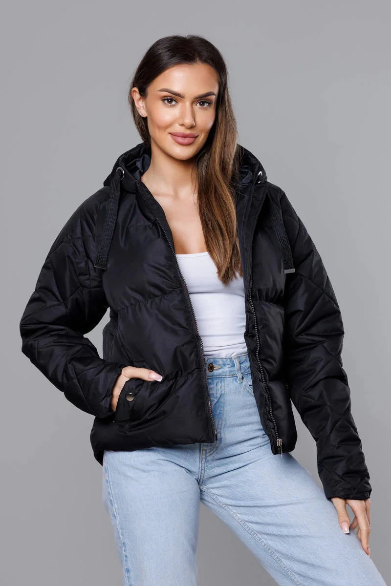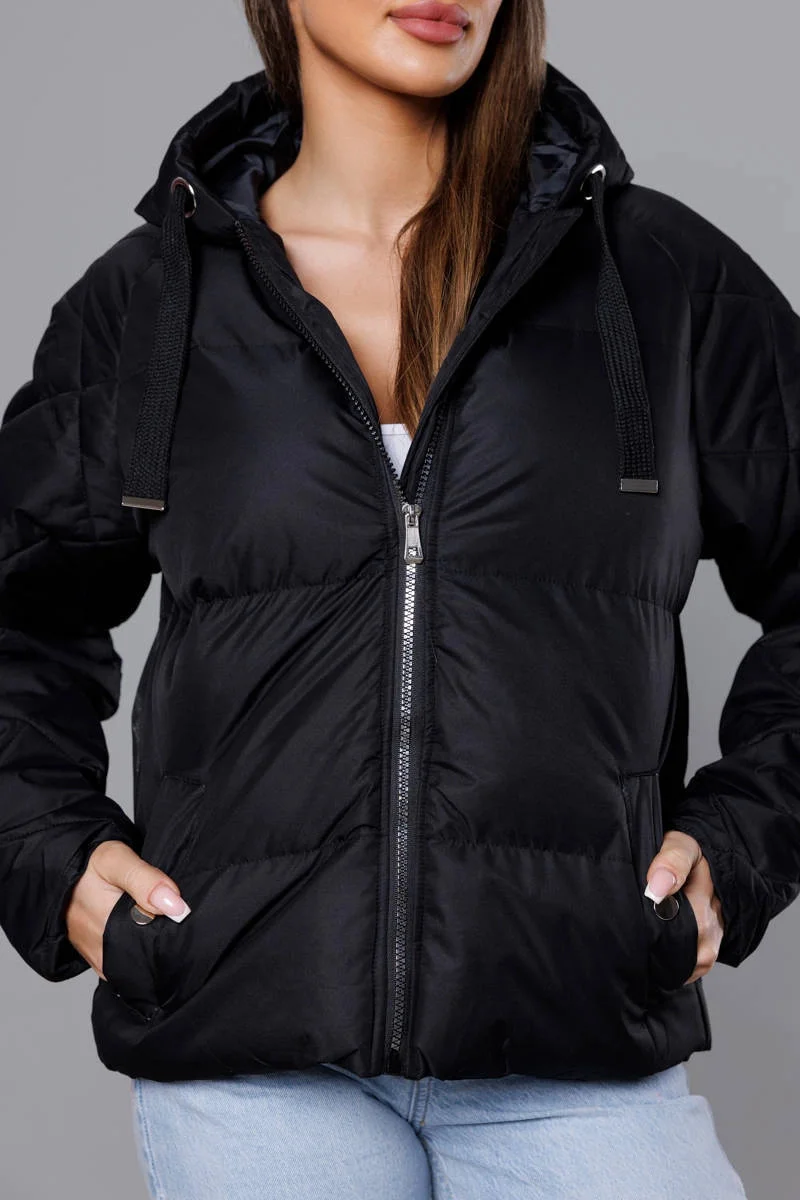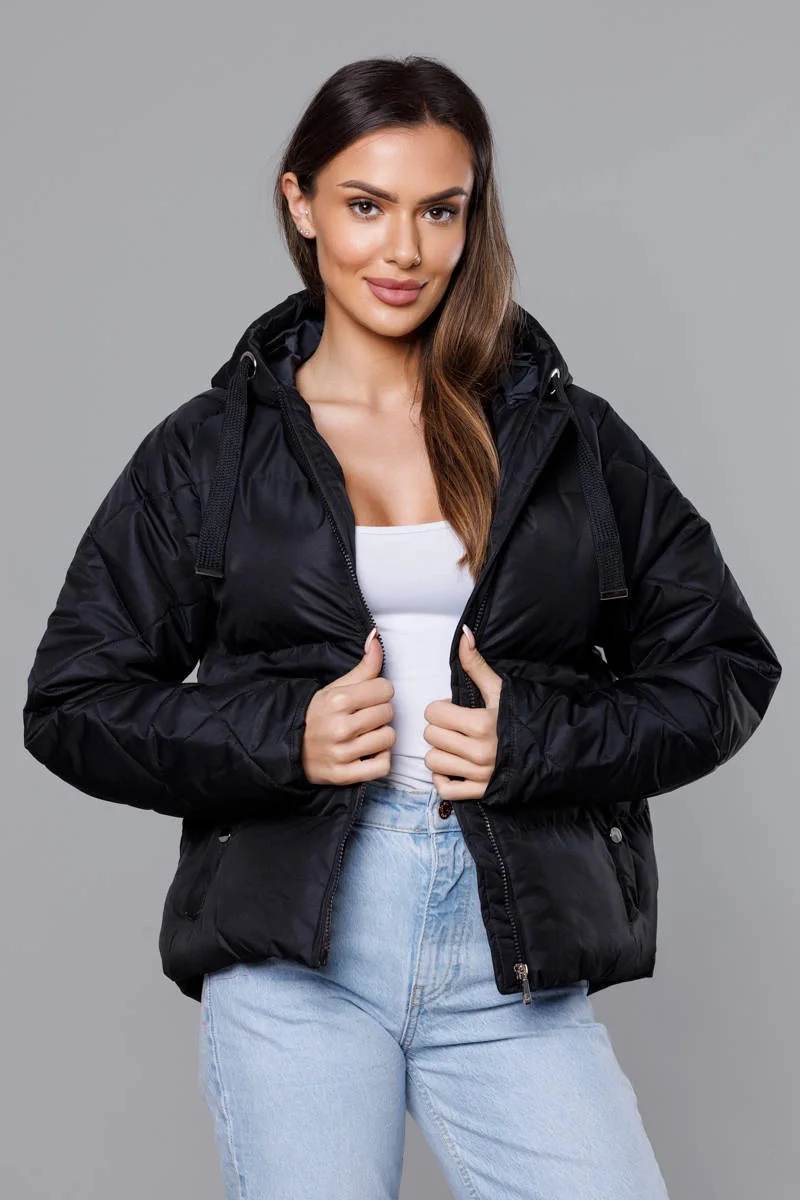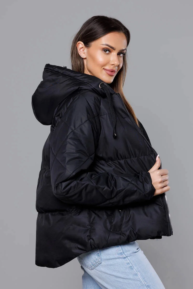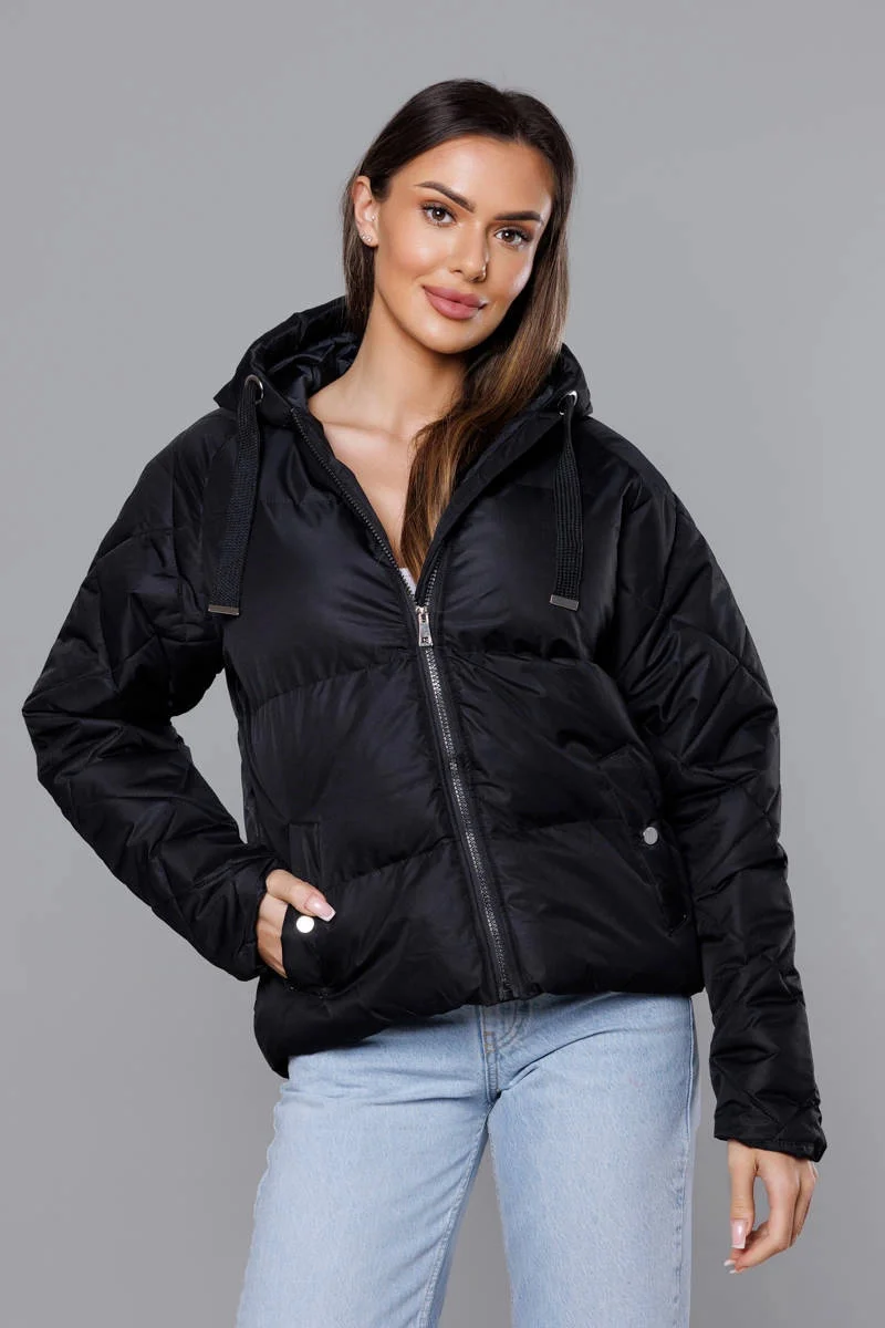 Černá bunda pro přechodné období s prošívanými rukávy (5M3113-392)