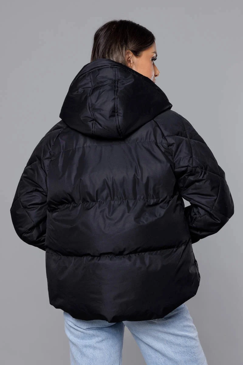Bunda je zateplená vrstvou syntetické péřové výplně, má dvě kapsy a zapíná se stříbrnýmzipem. Model má kapuci, kterou není možné odepnout. Bunda má délku k bokům, přičemž přední část je o něco kratší než zadní část.