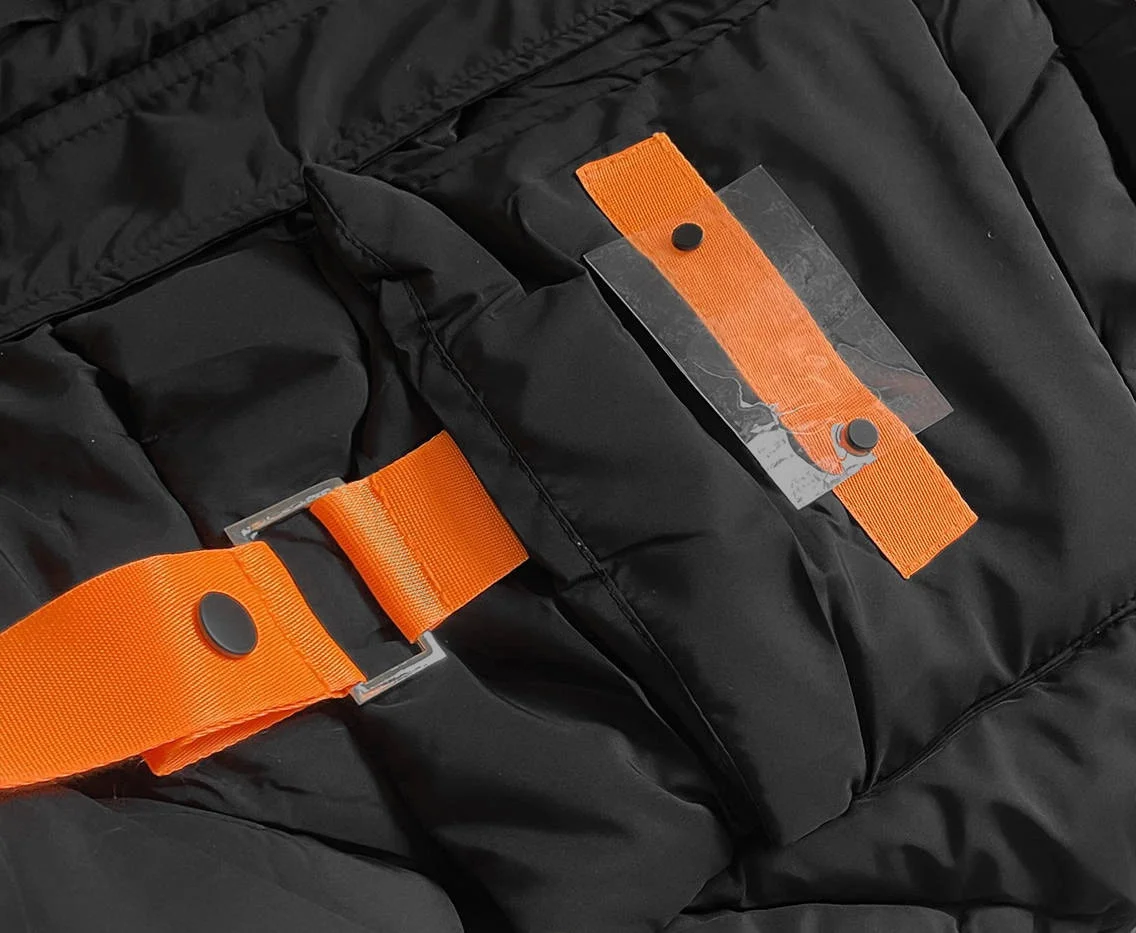 Přidání recenze k Černá péřová dámská bunda s ozdobnými páskami (AG2-J85)