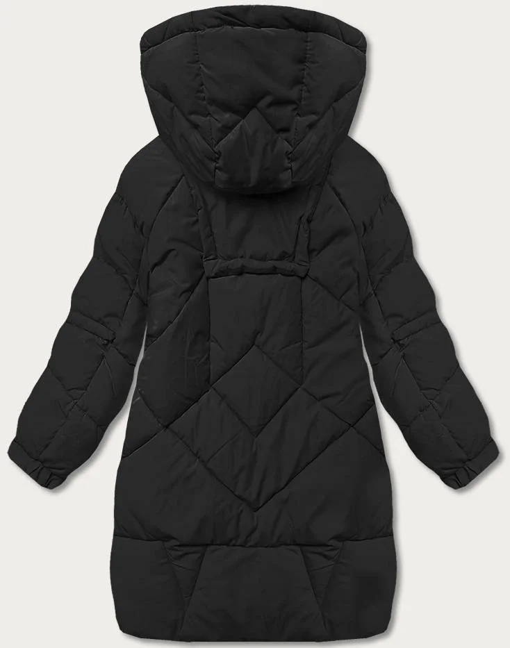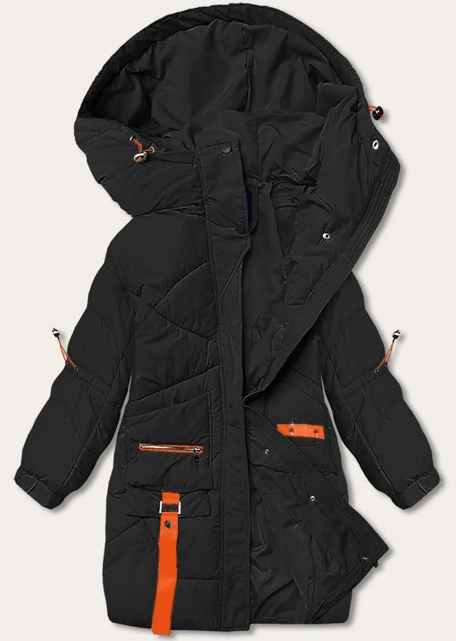 Černá péřová dámská bunda s ozdobnými páskami (AG2-J85)