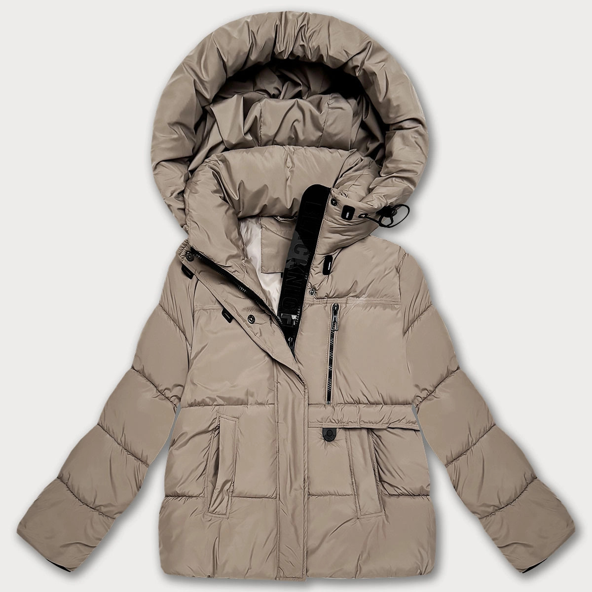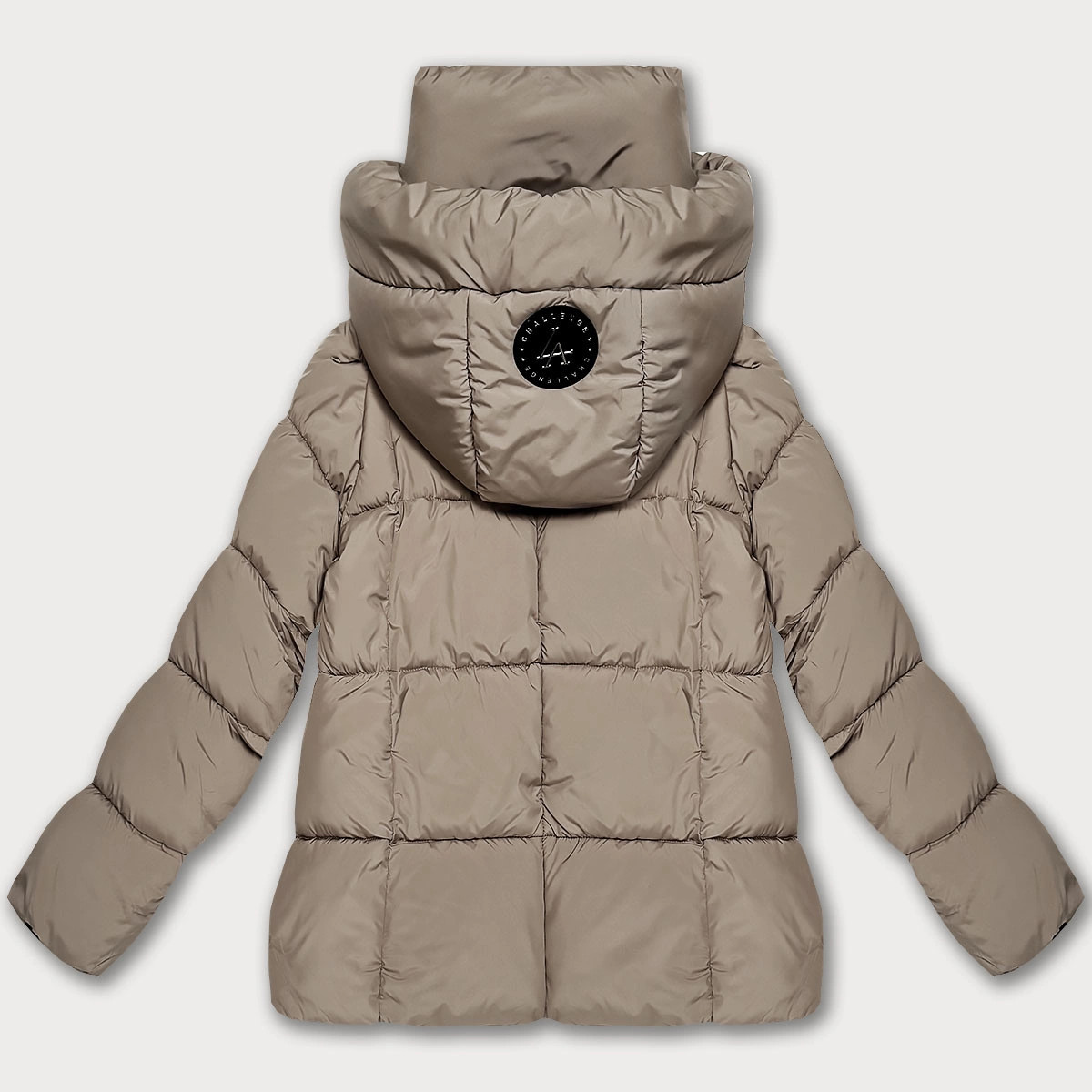 Tmavě béžová volná péřová dámská bunda s kapucí S'West (B8529-12)