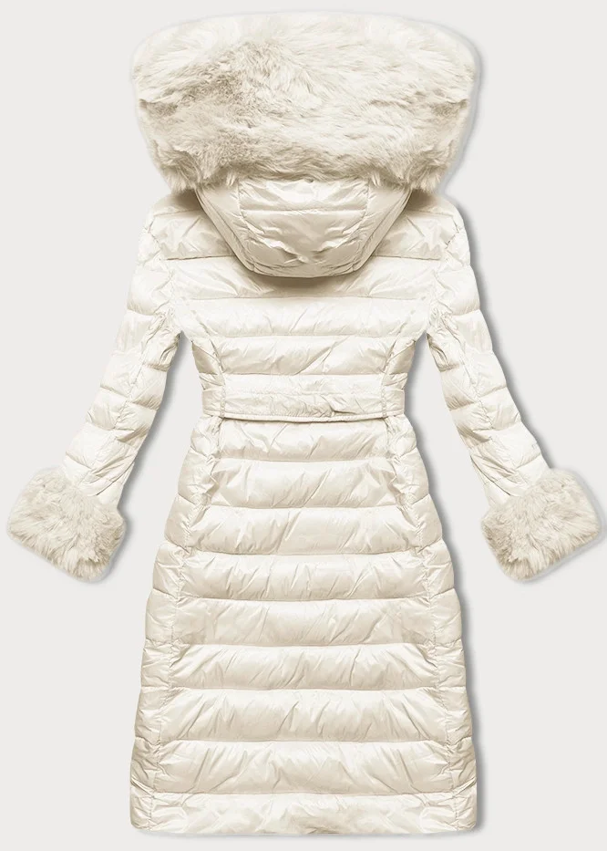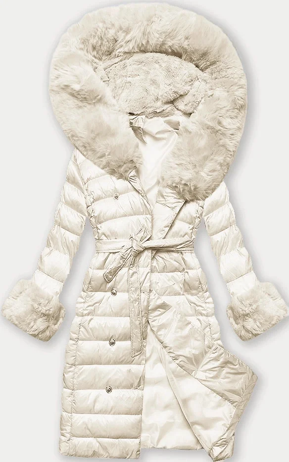 Dámský péřový kabát v barvě ecru se zapínáním na knoflíky (5M3160/1-254)