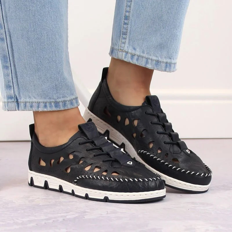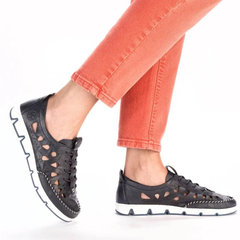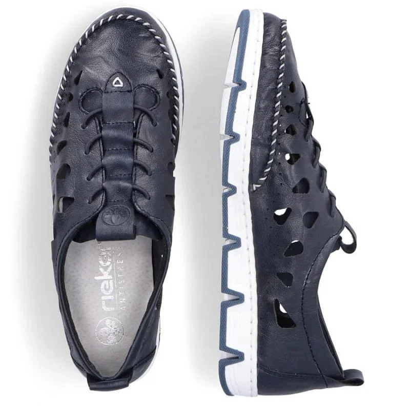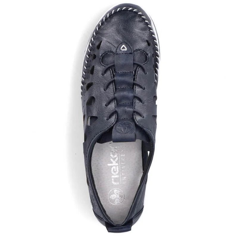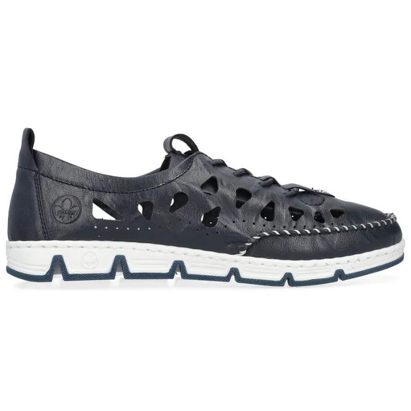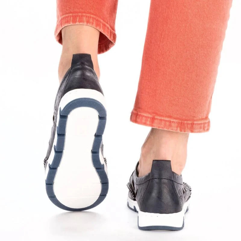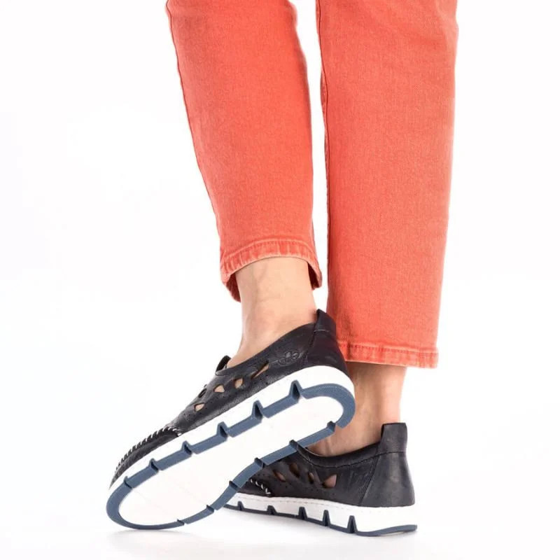 Rieker W RKR652 námořnicky modrá kožená polobotka s prolamovanou podrážkou
