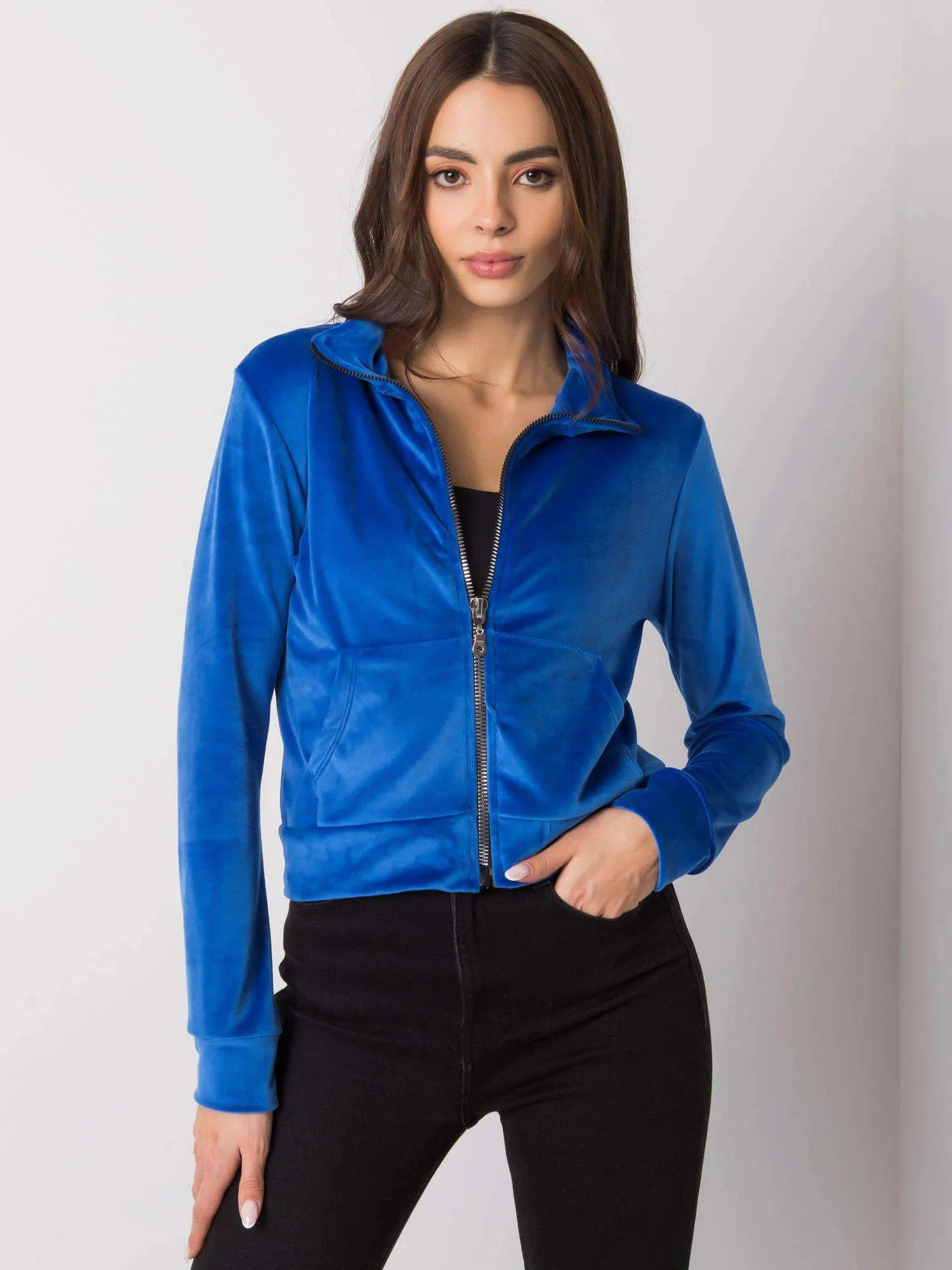 RUE PARIS Tmavě modrá velurová mikina na zip.