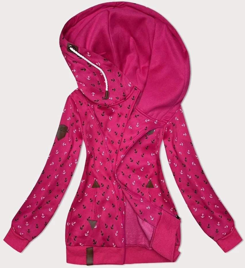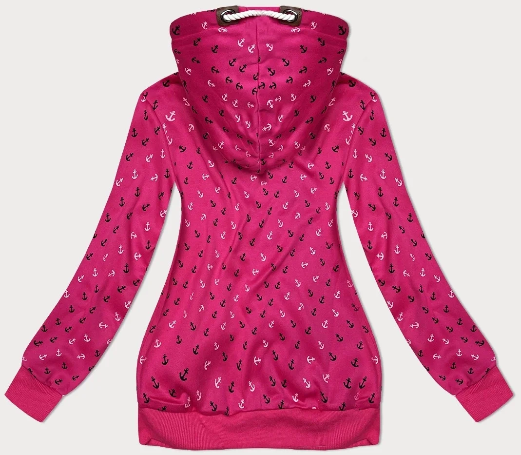 Růžová hrubší mikina se šikmým zipem a se vzorem kotev (2308)