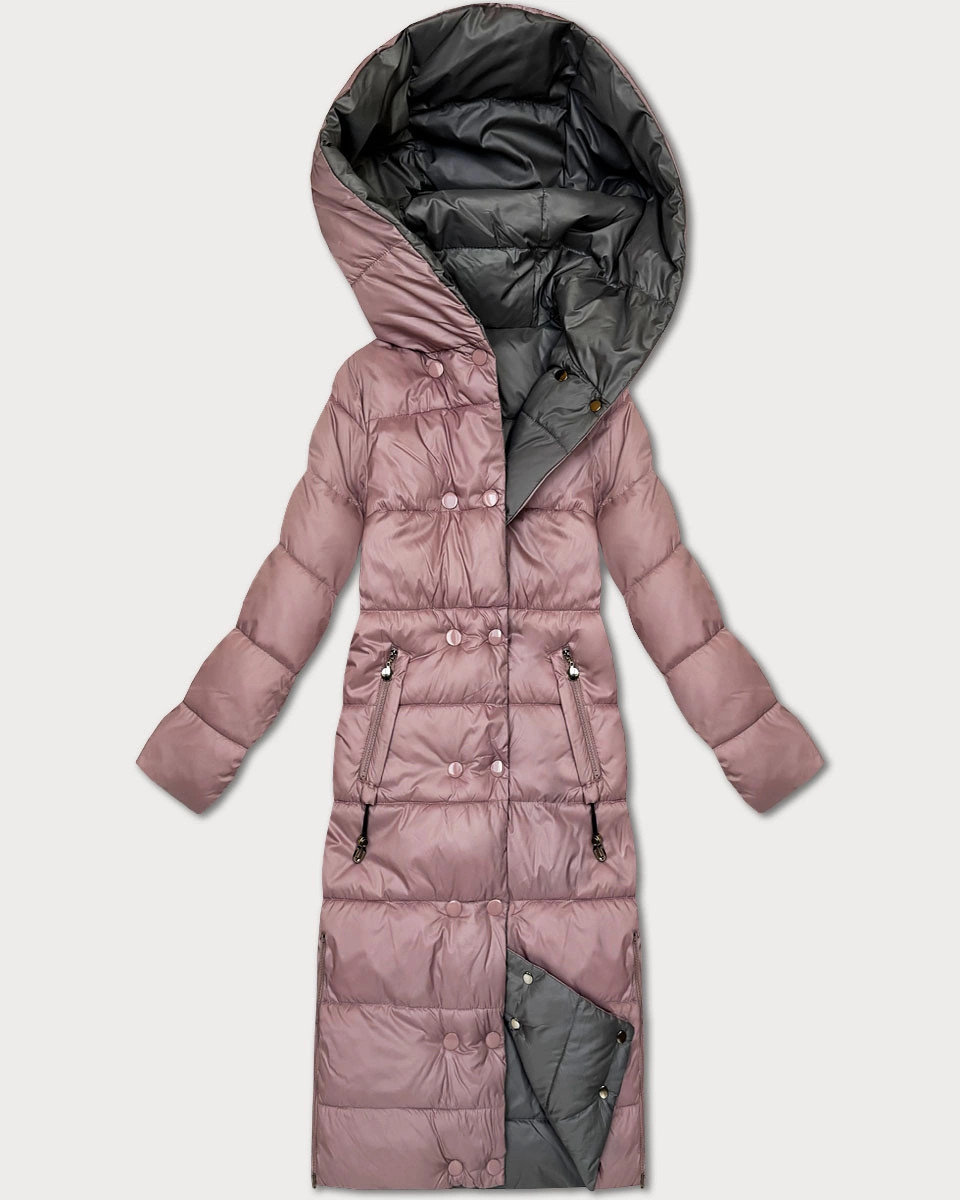 Růžovo-šedá oboustranná zimní bunda v délce ke kolenům Minority (P3-6017-52+61)
