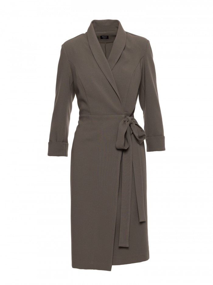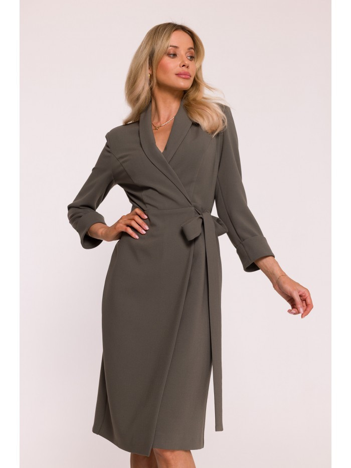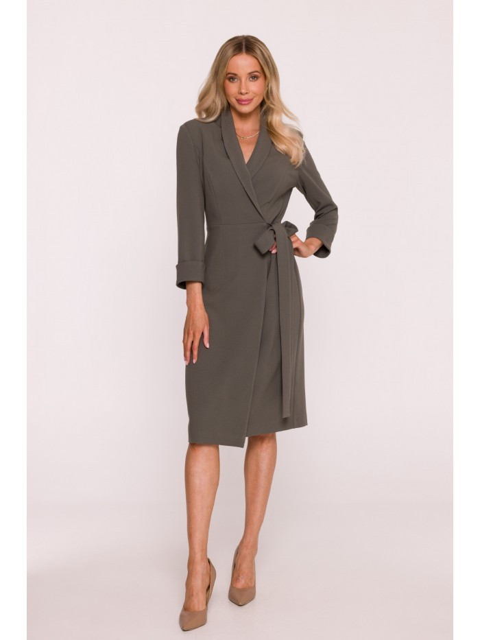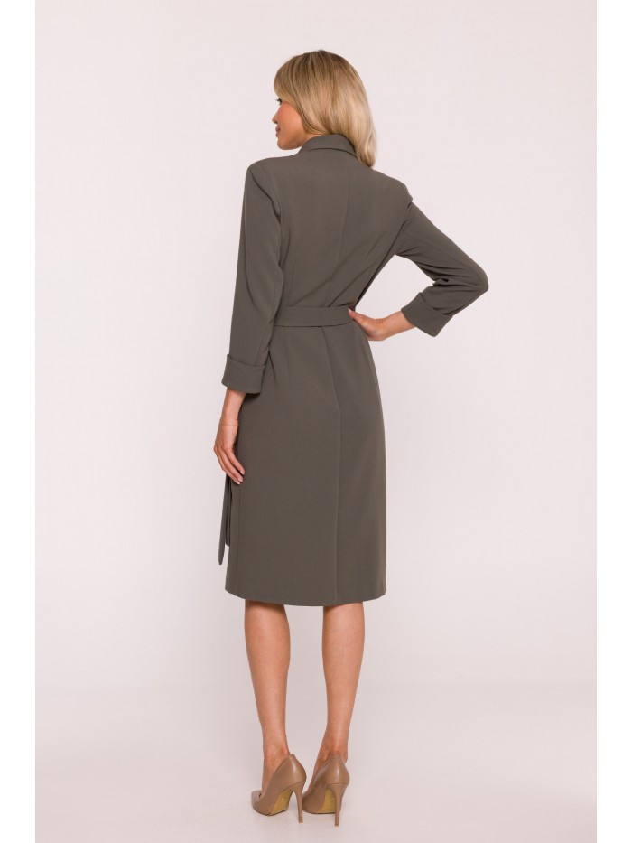1. S415 Košilové šaty vázané v pase - khaki barva