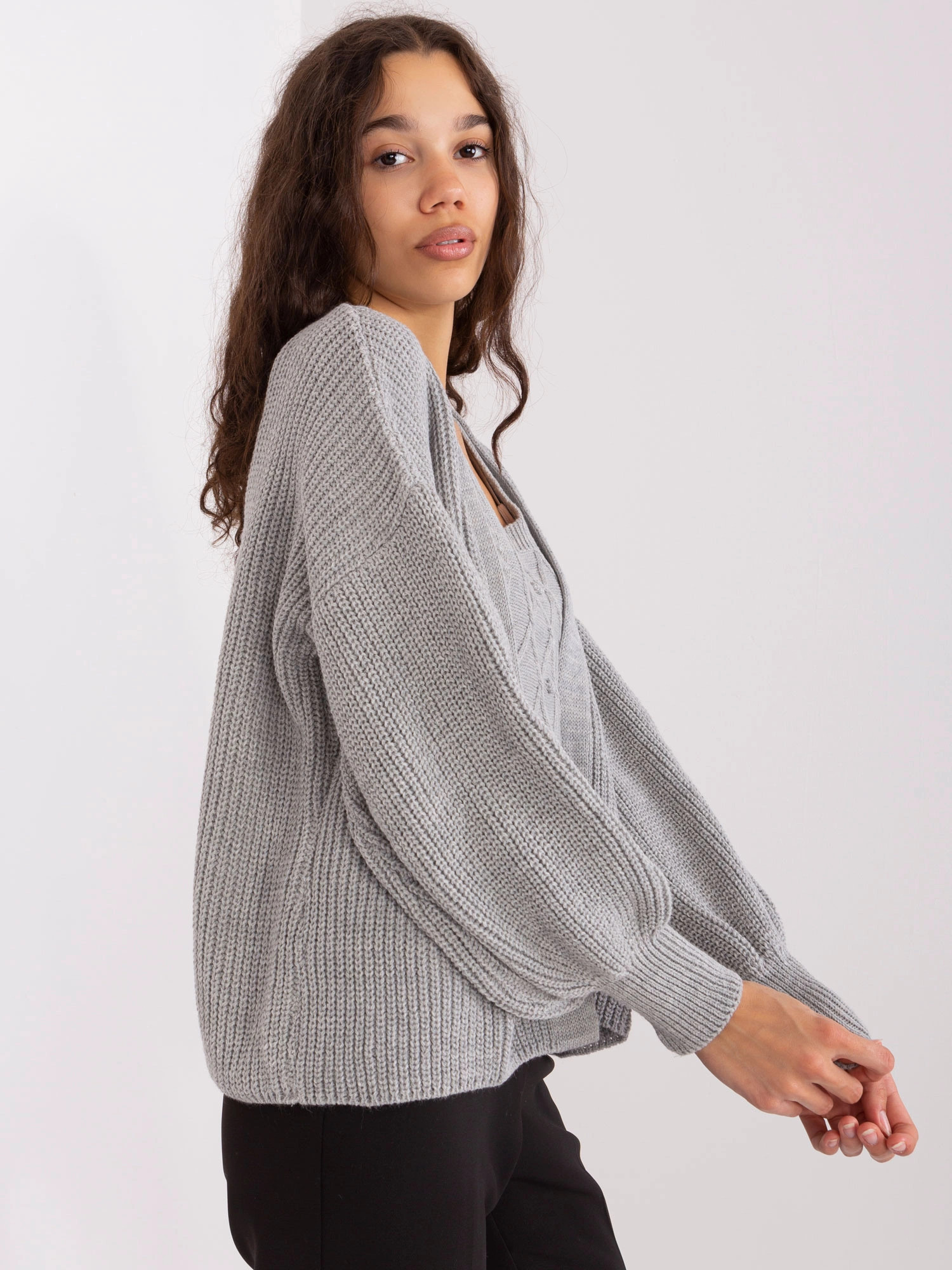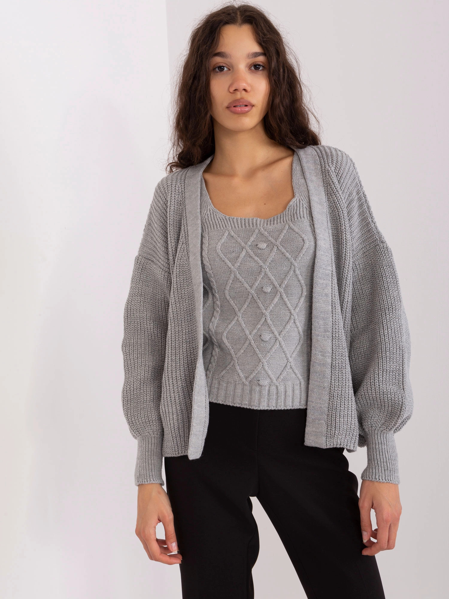 • Šedý dámský dvoudílný komplet - top a svetr (8019)