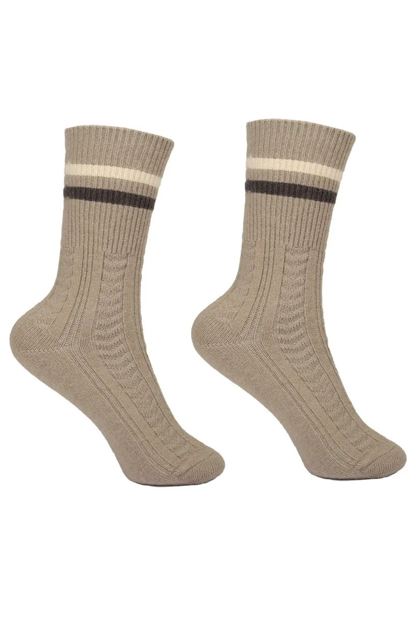 Dámské ponožky zdobené vazbou a dvěma pruhy, vyrobené z měkkého a jemného úpletu, bez tlaku.Složení:54 % viskóza, 22 % polyester, 20 % polyamid, 4 % elastan.