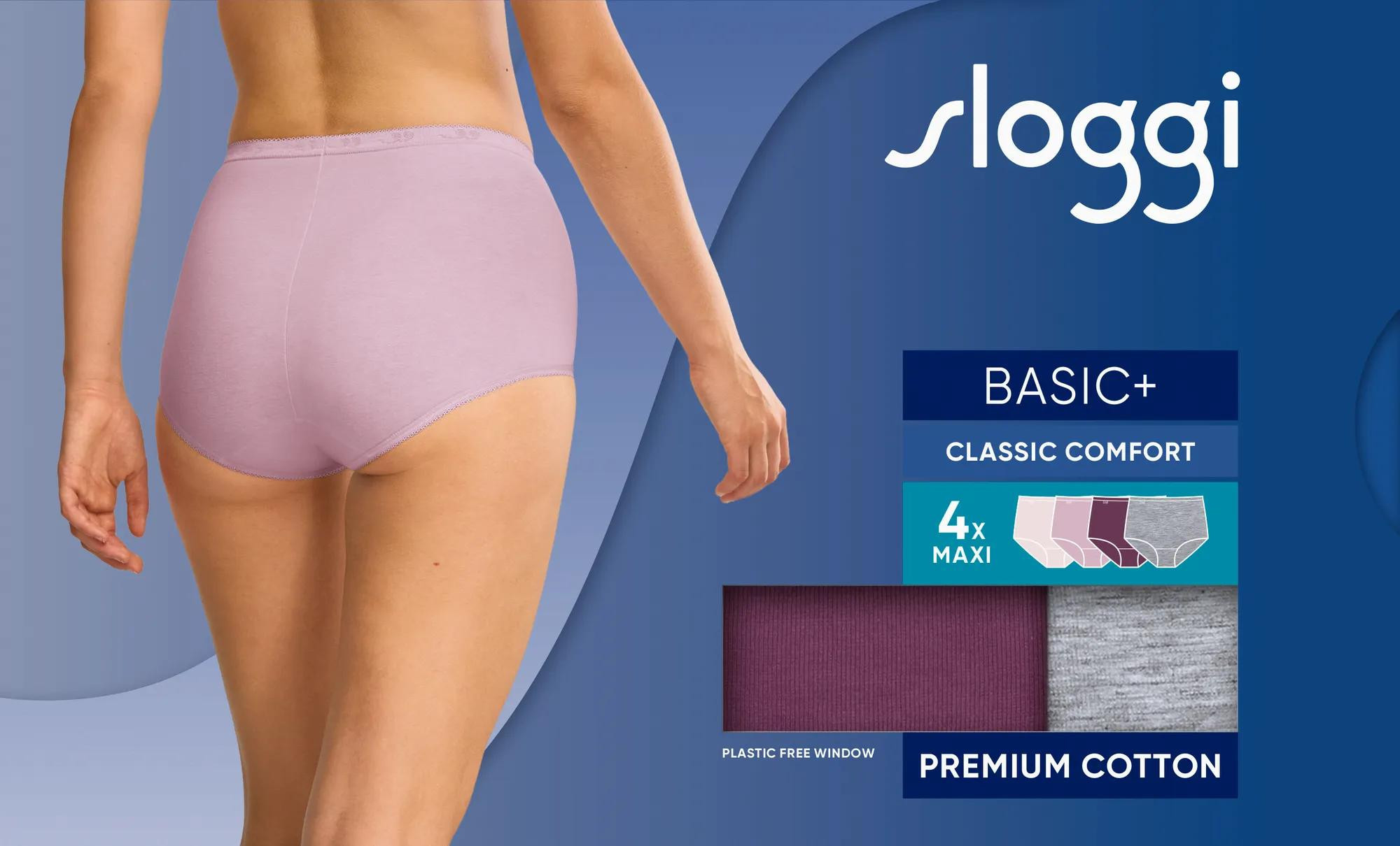 Super měkké, odolné a neuvěřitelně pohodlné - není divu, že tyto kalhotky Basic+ Maxi jsou nejprodávanějšími kalhotkami značky sloggi. Vyrobené z kvalitního bavlněného žerzeje, mají hladké švy, které jsou úplně neviditelné pod oblečením, takže si můžete užívat plnější zakrytí bez viditelných linií.