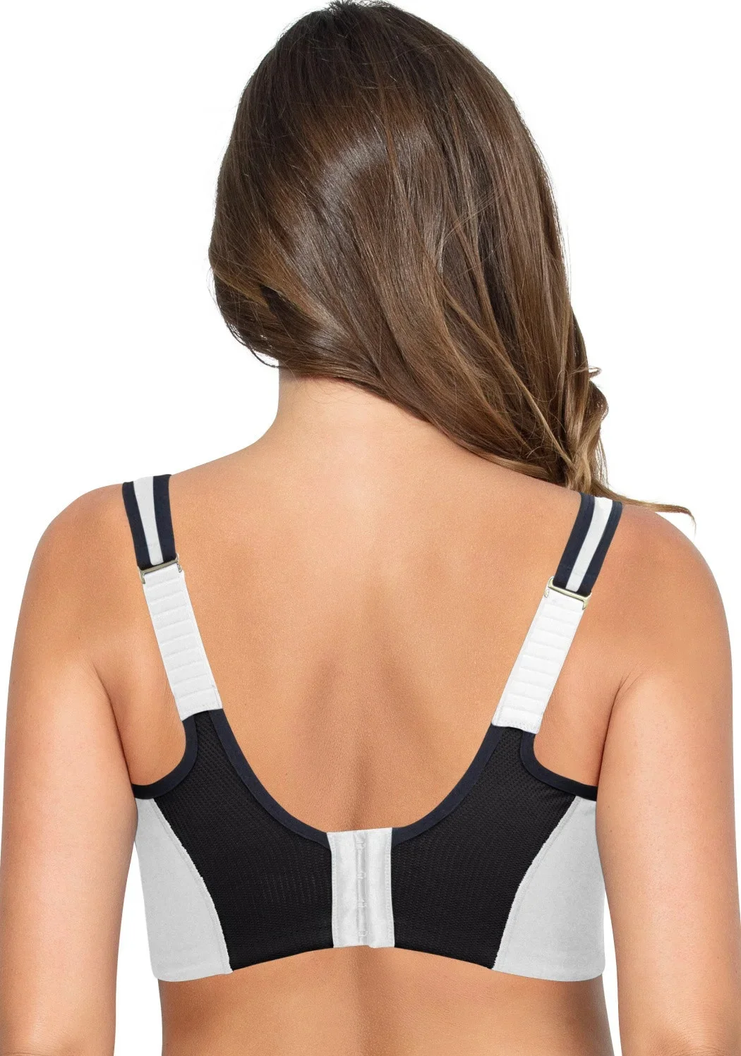 Novinková sportovní podprsenka Parfait ACTIVE od značky PARFAIT, amerického specialisty na D+ velikosti. Sportovní podprsenka je technicky vytvořena speciálně pro větší a velká prsa, muldovaný košíček z měkké prodyšné pěny odvádějící vlhkost, vysoký střed, kostice měkce zapracovány do materiálu, obvod je dostatečně široký, jemně zpracovaný a zapínatelný na 4 háčky ve 4 liniích. Ramínka jsou na ramenou rozšířena a v zádové části posuvně zapínatelná do měkce vypolstrovaných podložek, kdy je v případě potřeby můžeme zapnout i do kříže. Podprsenka má velmi moderní design s vloženými částmi střihu ve dvou barvách - černé a bílé.