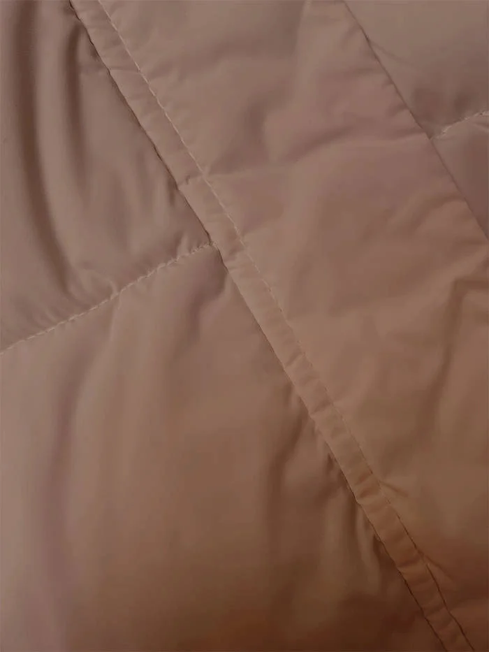 Bunda má volný střih, je zateplená syntetickou péřovou výplní, má dvě kapsy bez zapínání a zapíná se zipem. Model má stojáček a kapuci, kterou není možné odepnout. Na koncích rukávů jsou skryté stahovací lemy. Na spodním okraji modelu je stahování v podobě gumy. Bunda má délku k bokům.