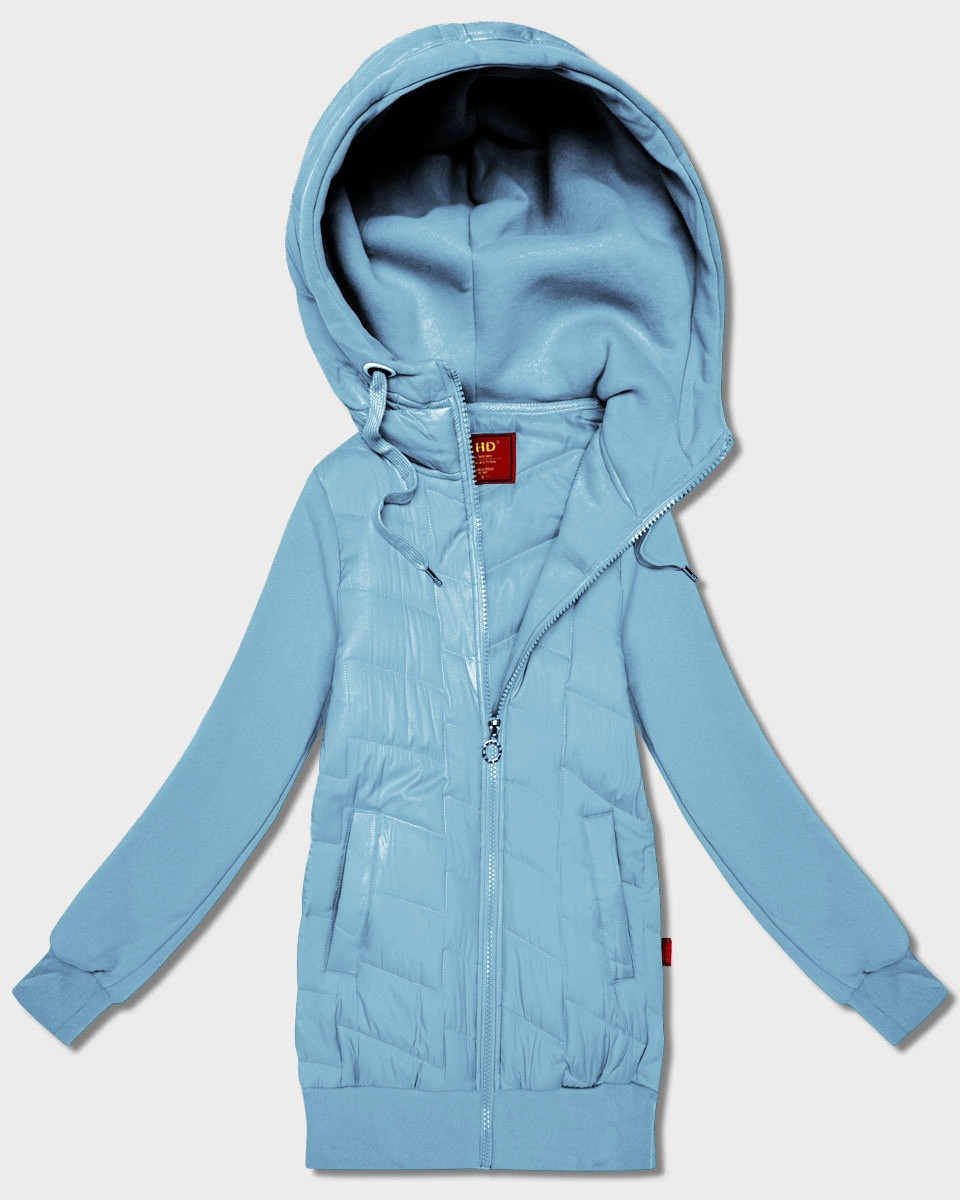 Světle modrá dámská mikina z různých materiálů s kapucí Goodlookin (AMG-175)