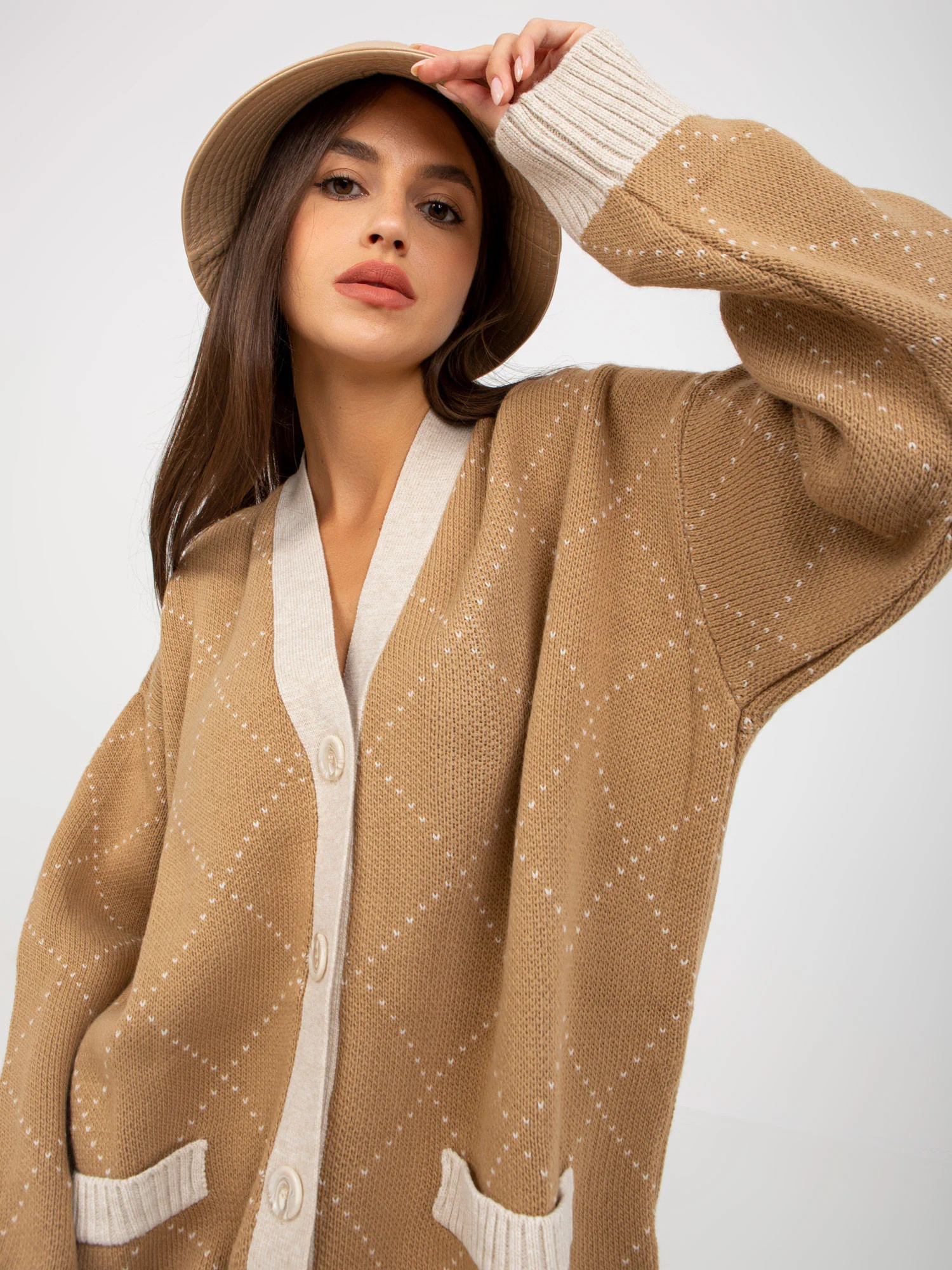 Velbloudí elastický svetr se vzorem RUE PARIS .