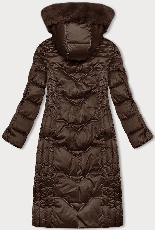 Vypasovaná dlouhá hnědá dámská zimní bunda S'west (B8201-14)