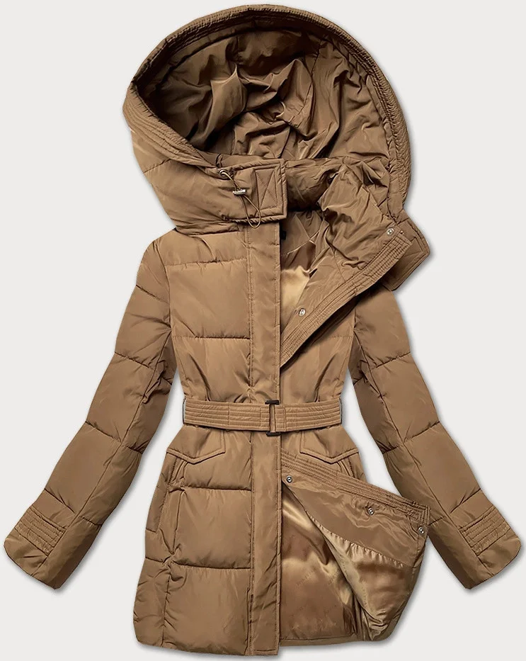 Zimní bunda úzkého střihu s páskem hnědá (23MY-207)
