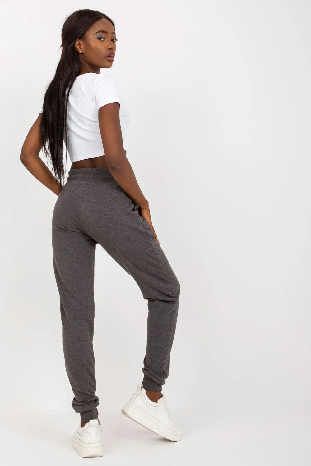 Tepláky s elastickým pasem, kapsy na bocích. Kalhoty s vysokým pasem a šňůrkou v pase.