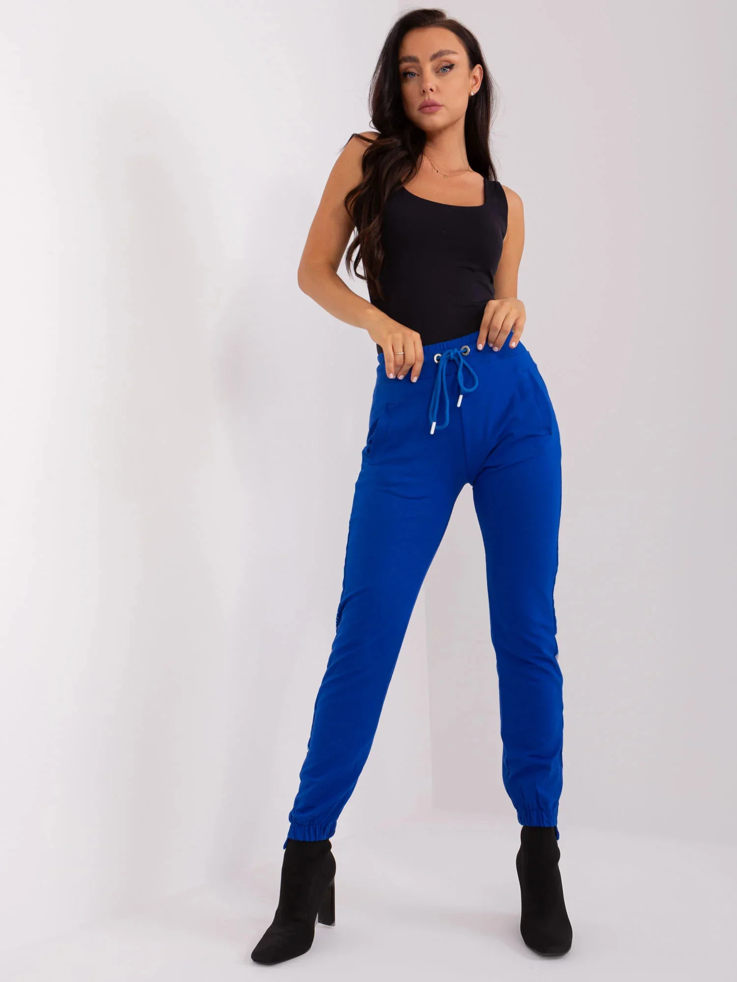 Kobaltové tepláky s kapsami .