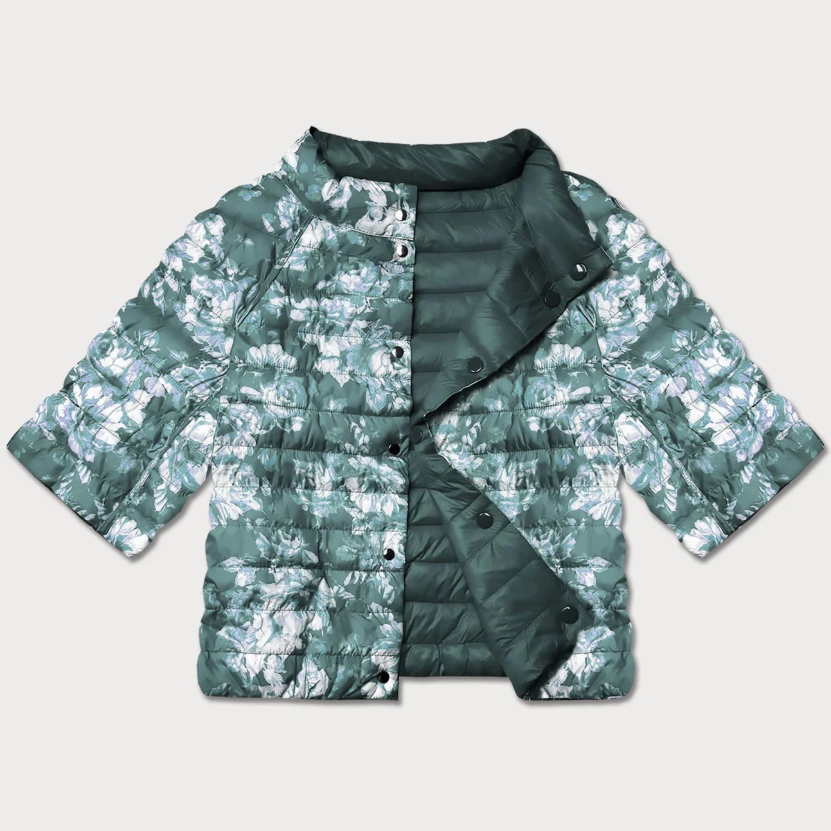 Tmavě mátová/květovaná oboustranná dámská plus size bunda se 3/4 rukávy Minority (M23-7010-253)
