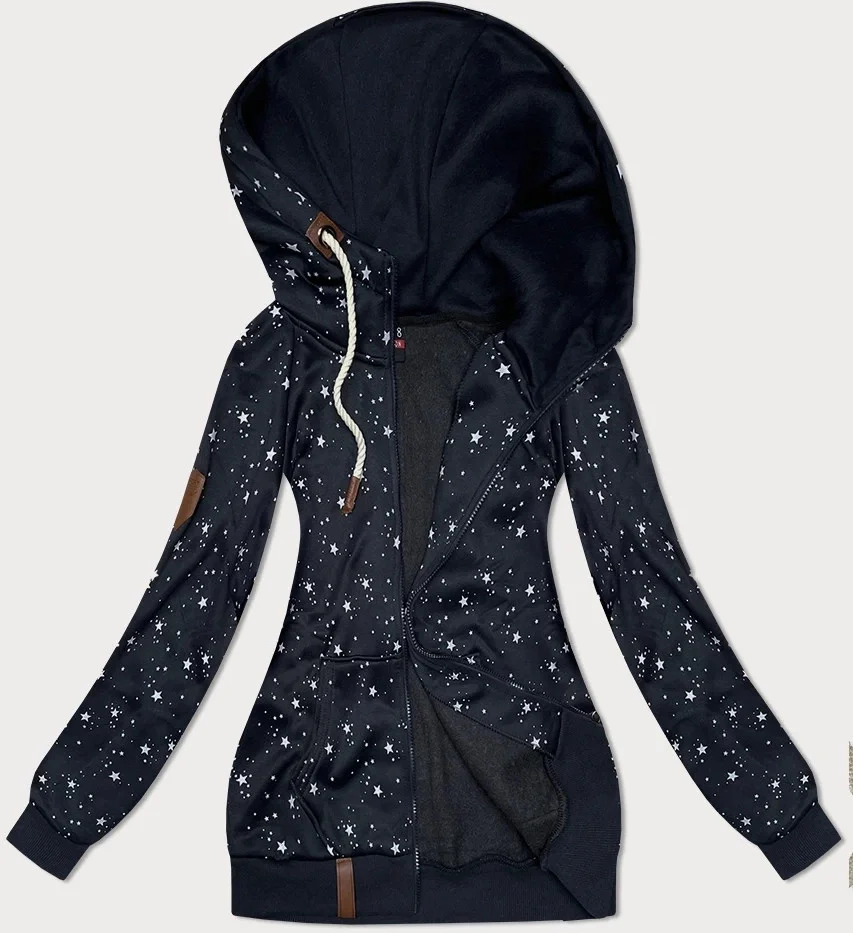 Přidání recenze k Tmavě modrá dámská mikina s kapucí a se vzorem hvězdiček (2305)