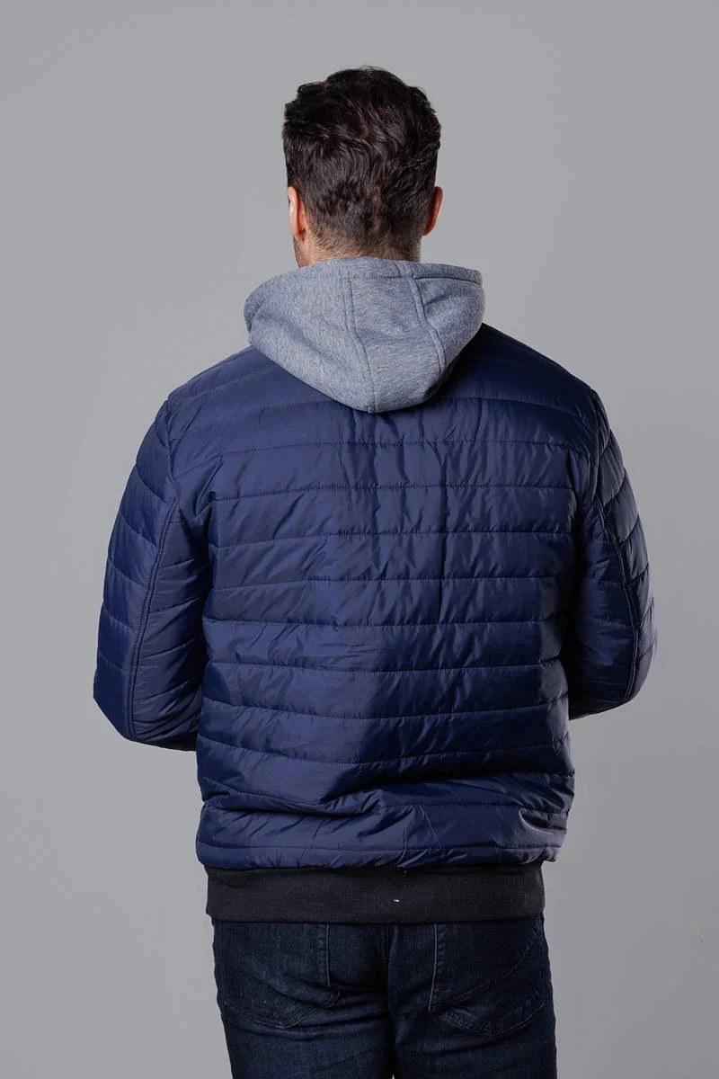 Tmavě modrá pánská bunda typu "bomber" s teplákovou kapucí (8M985-215)
