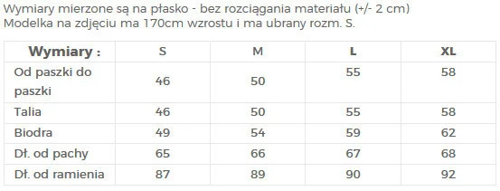 Modelka na obrázku měří 170 cm a má na sobě model ve vel. S.