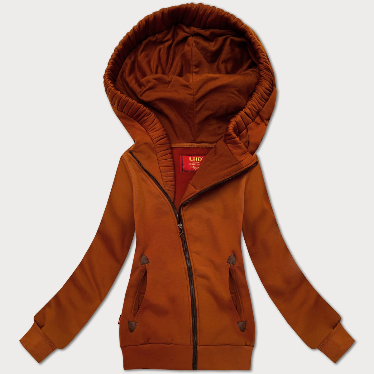 Dámská mikina s asymetrickým zipem LHD karamelová (AMG-61)