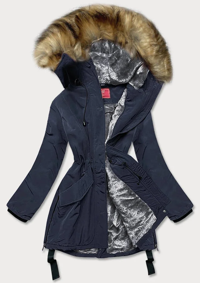 Tmavě modrá voděodolná dámská bunda s vysokým stojáčkem (m-953)
