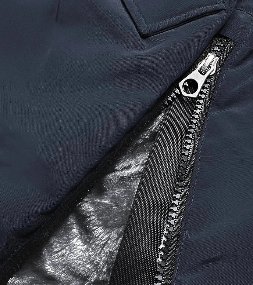 Bunda má vypasovaný střih, uvnitř je zateplená mechovitou kožešinou, má dvě kapsy a zapíná se zipem a panelem s knoflíky. Model má kapuci olemovanou kožešinou. Zatímco kapuci není možné odepnout, kožešinu lemující kapuci odepnout lze. Rukávy jsou zateplené syntetickou péřovou výplní. Na koncích rukávů jsou skryté stahovací lemy. V pase modelu je stahující šňůrka. Na bocích bundy jsou rozparky se zapínáním na zip a ozdobné pásky. Bunda má vzadu rozparek se zapínáním na patentku. Model má délku do poloviny stehen.