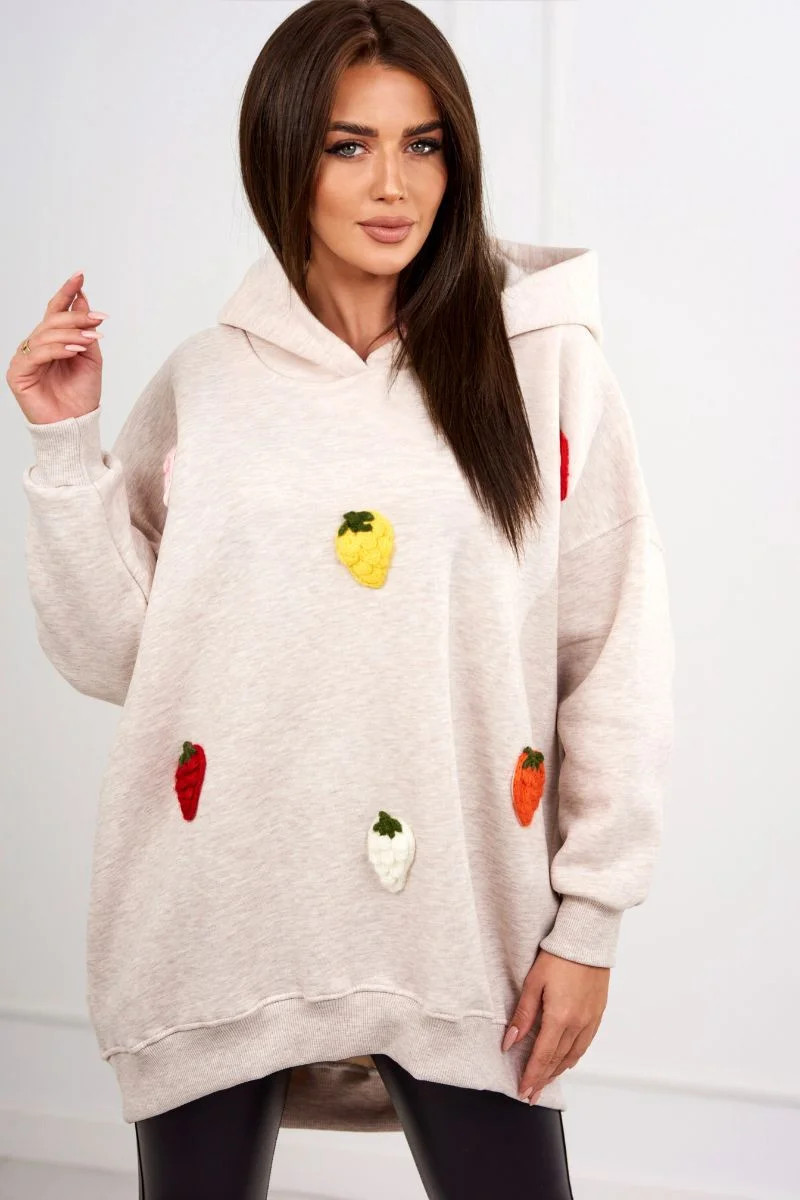 Zateplená mikina s jahodovým motivem béžová melanž