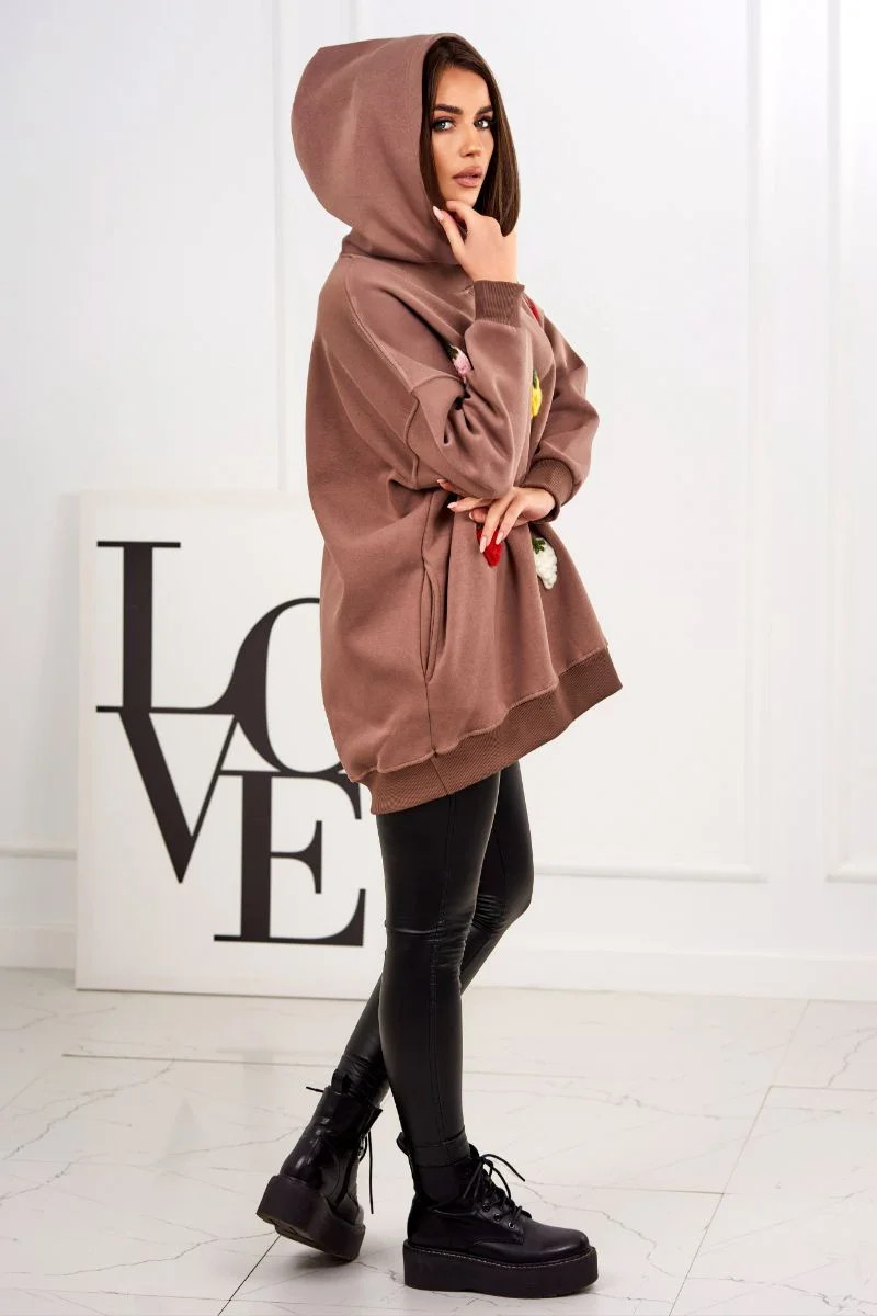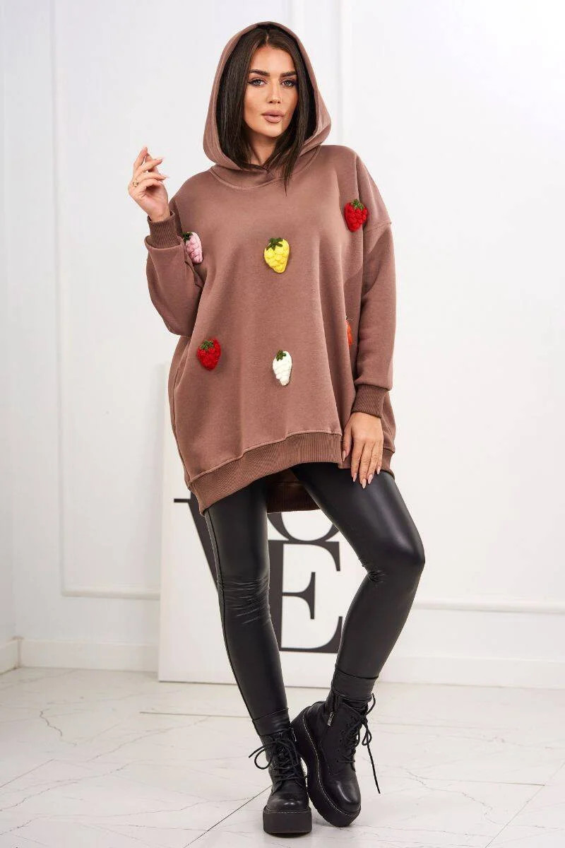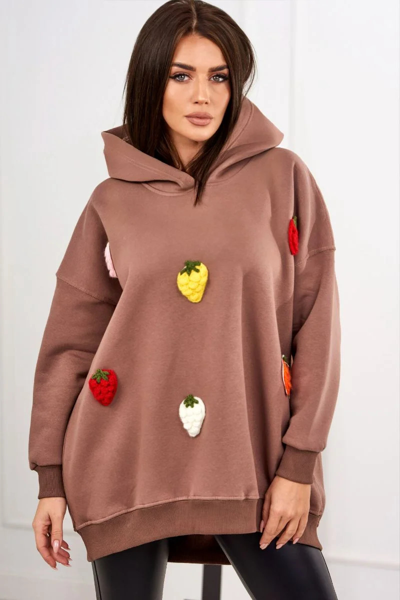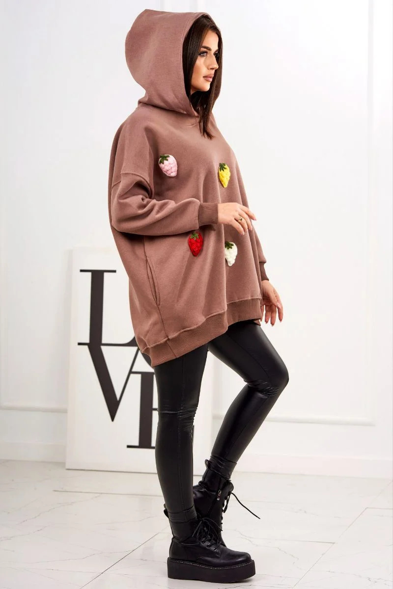 Zateplená mikina s jahodovým motivem mocca