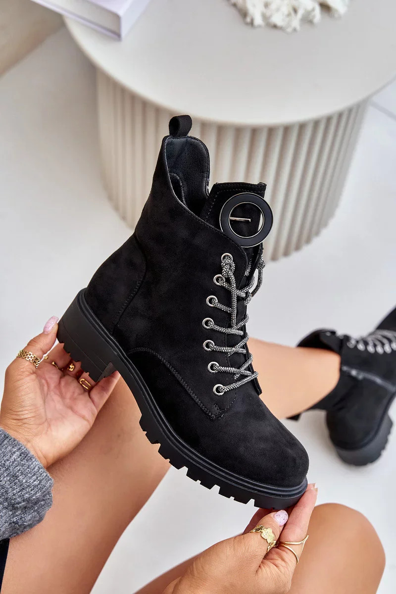 Zateplené boty s ozdobným šněrováním Vinceza Černé