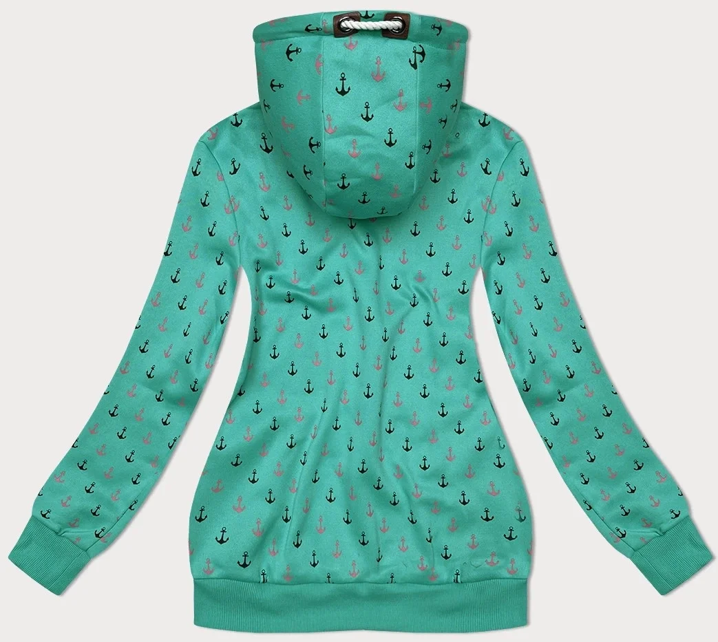 Zelená teplá rozepínací mikina se vzorem kotev (2307)