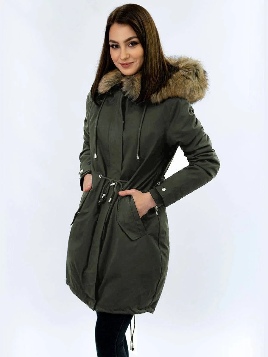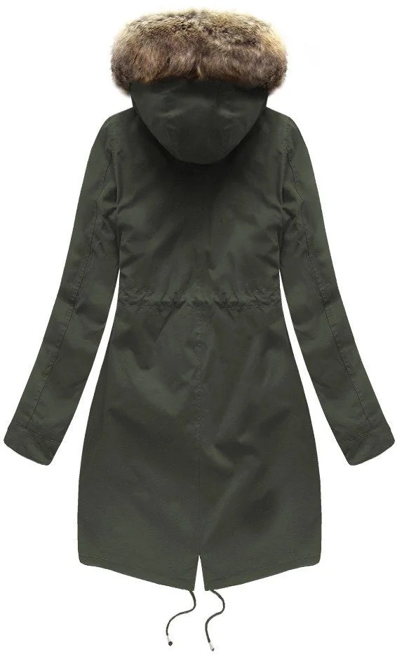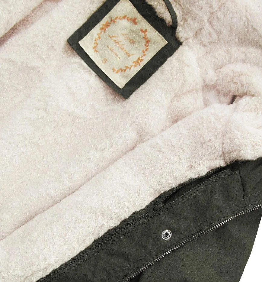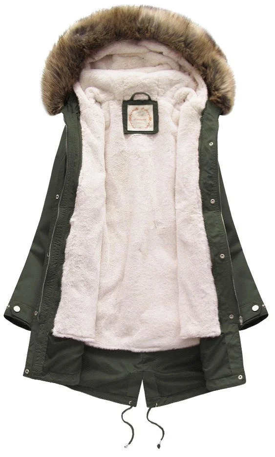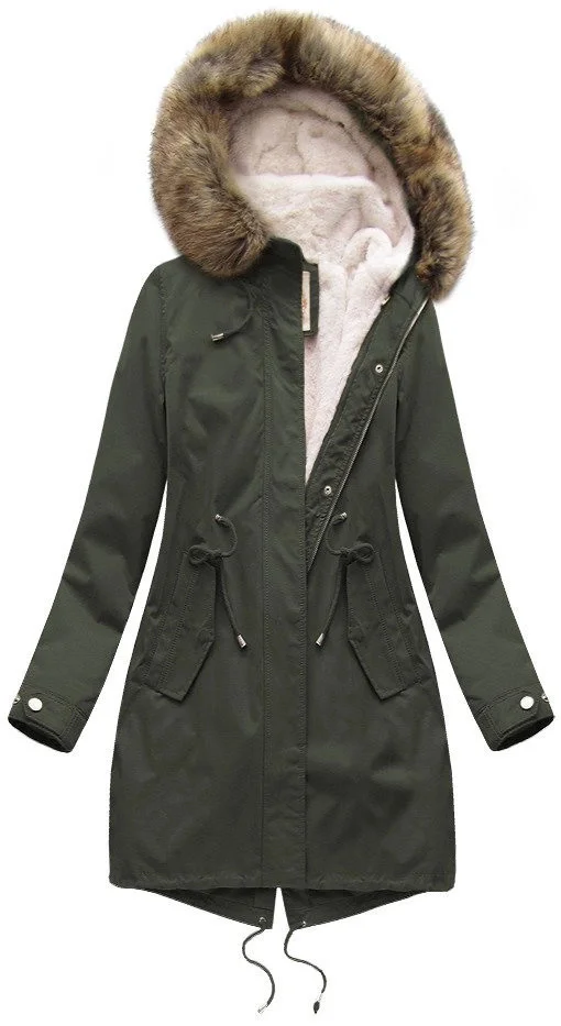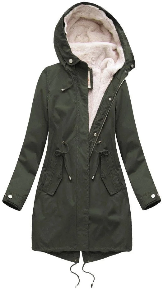 Dámská zimní bunda s fleecovou podšívkou a kapucí army (7626)