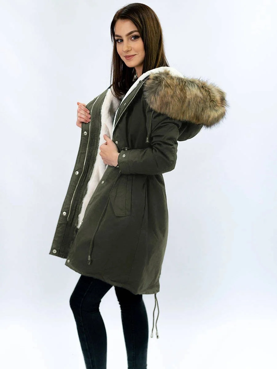 Přidání recenze k Dámská zimní bunda s fleecovou podšívkou a kapucí army (7626)