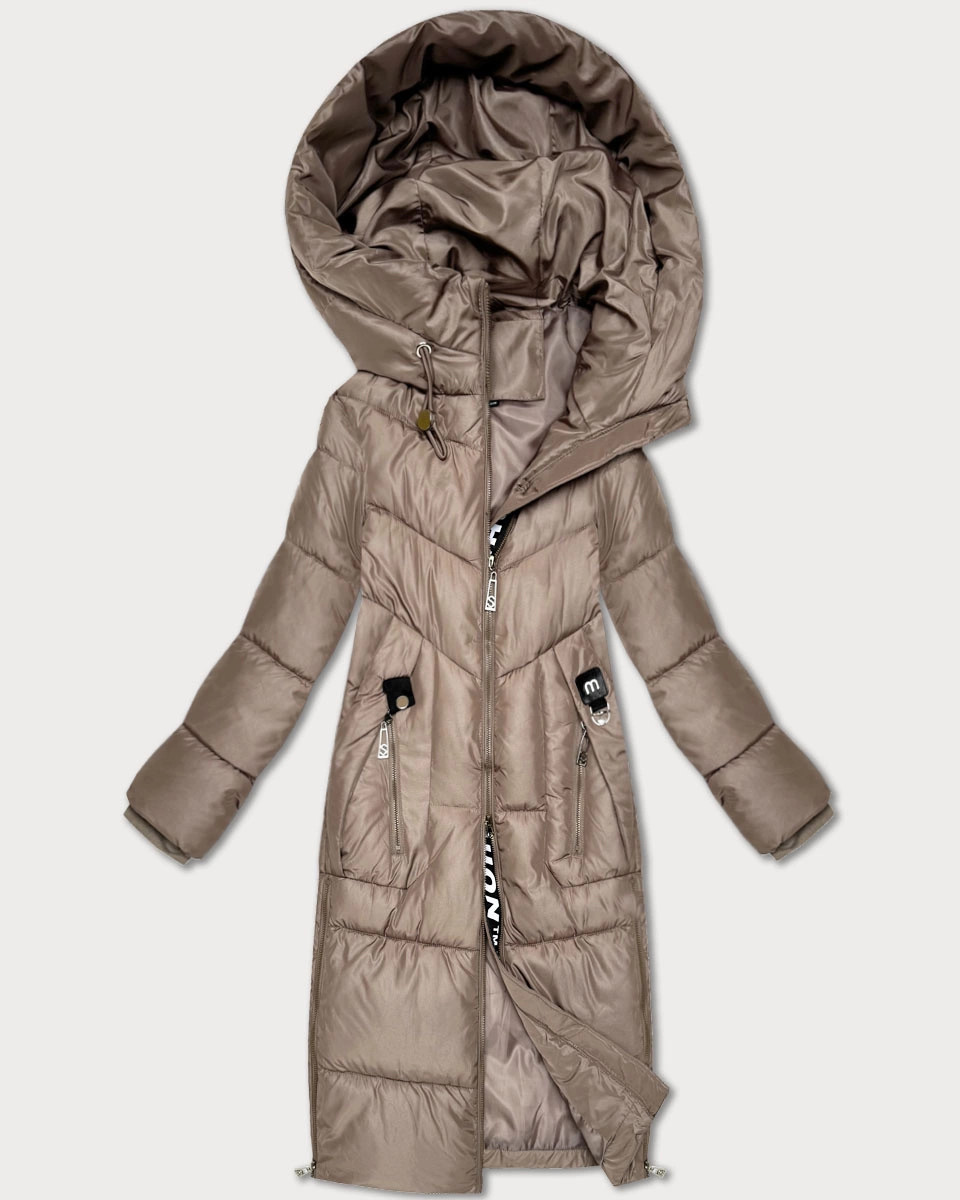 Tmavě béžová zimní vypasovaná bunda v délce do poloviny stehen S'West (B/R8535-12)