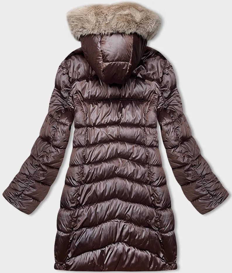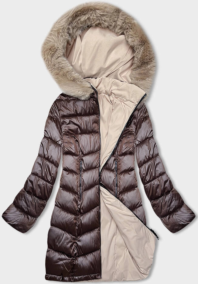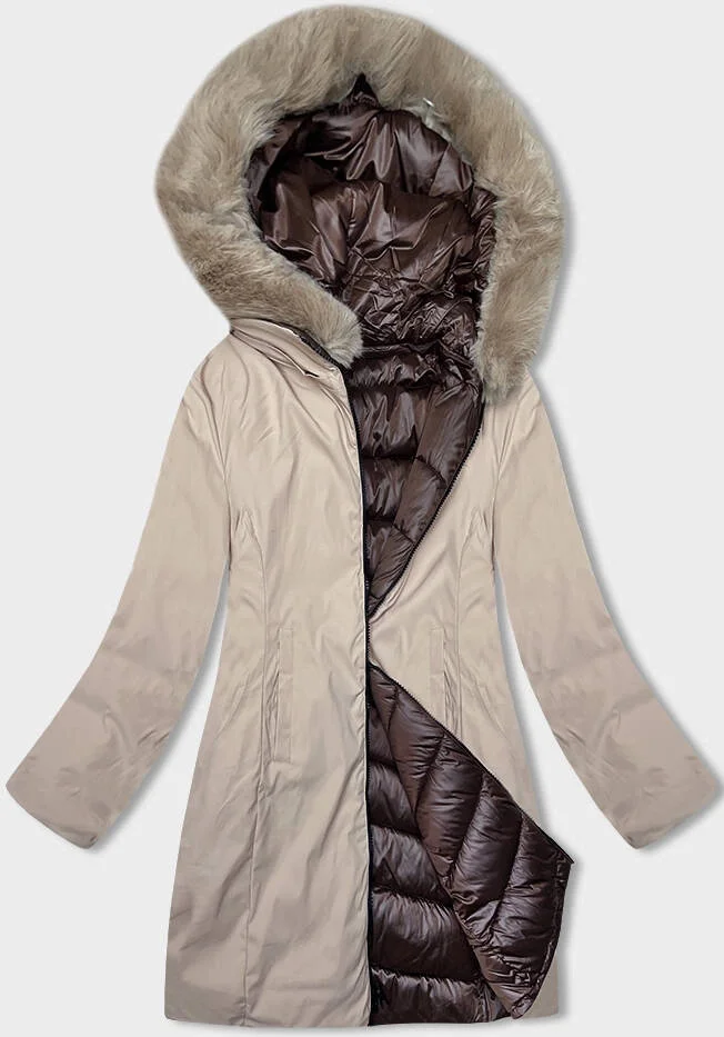 Hnědo-béžová dámská oboustranná zimní bunda s kapucí (B8203-14046)