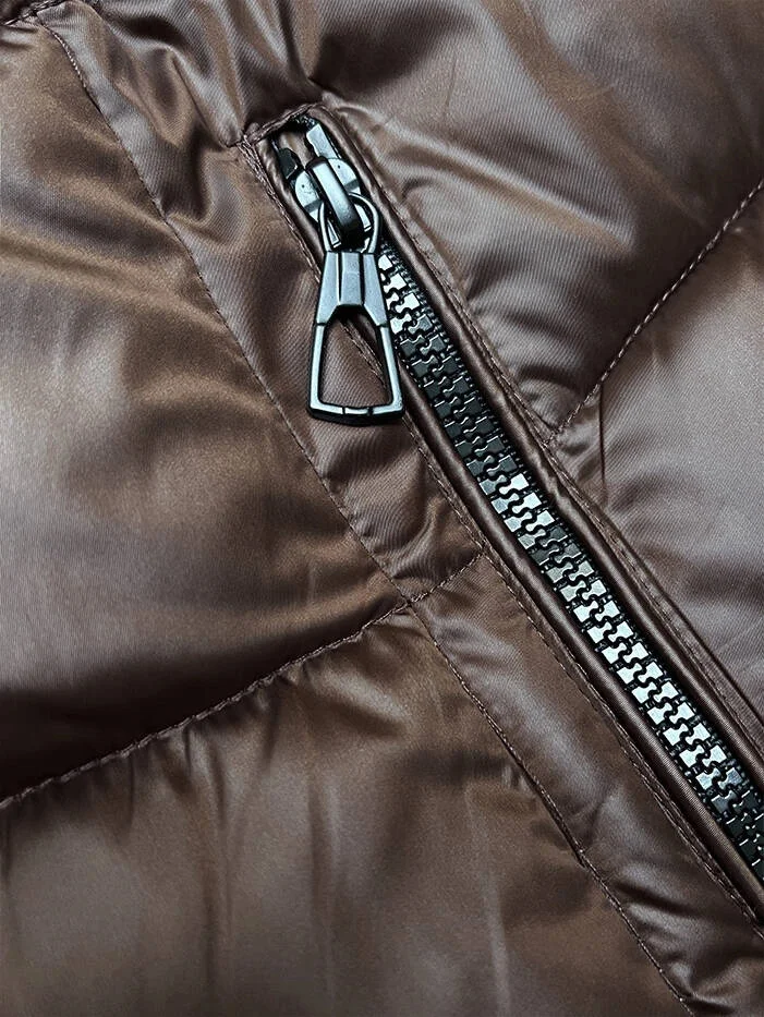 Přidání recenze k Hnědo-béžová dámská oboustranná zimní bunda s kapucí (B8203-14046)