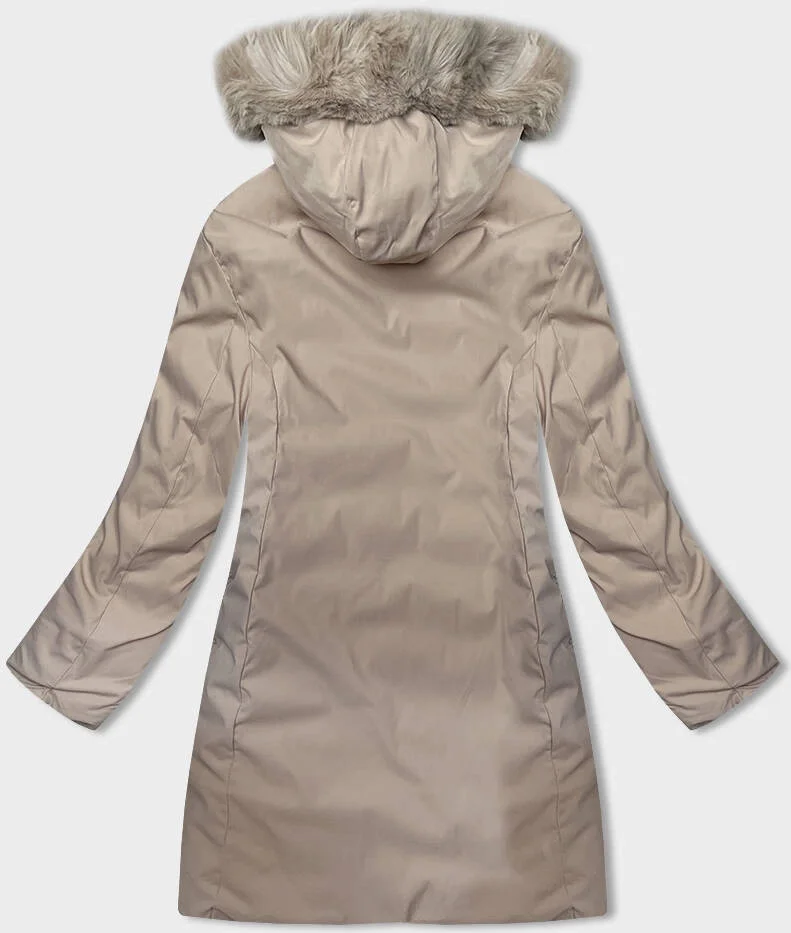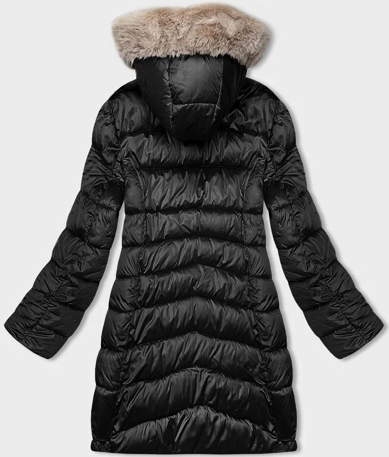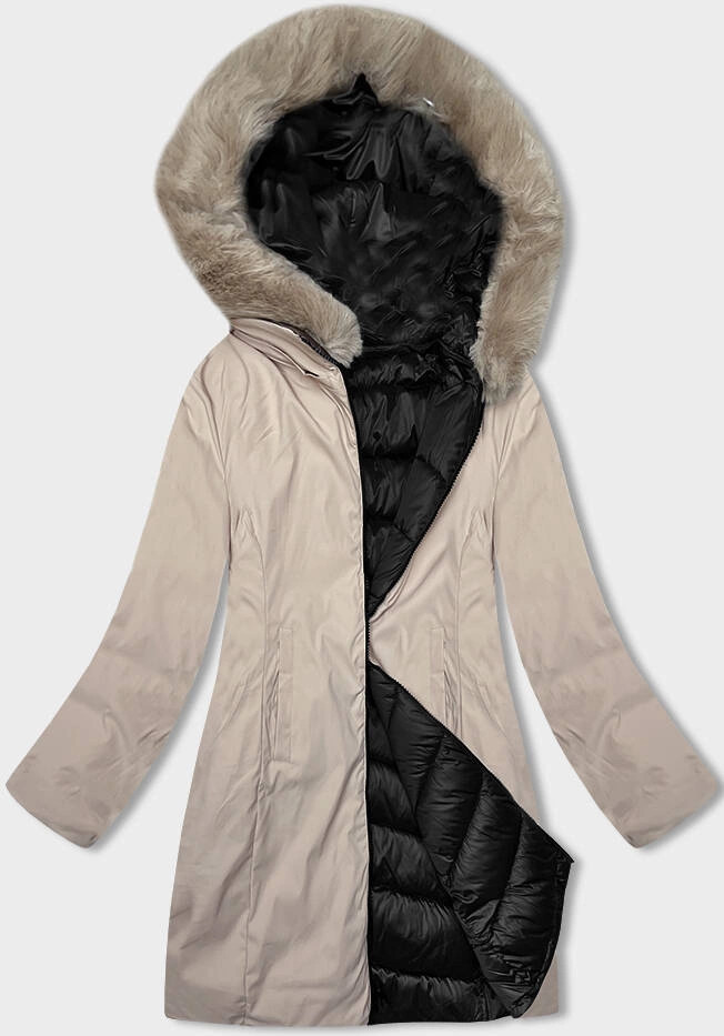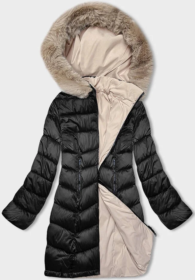 Černo-béžová dámská oboustranná zimní bunda s kapucí (B8203-1046)