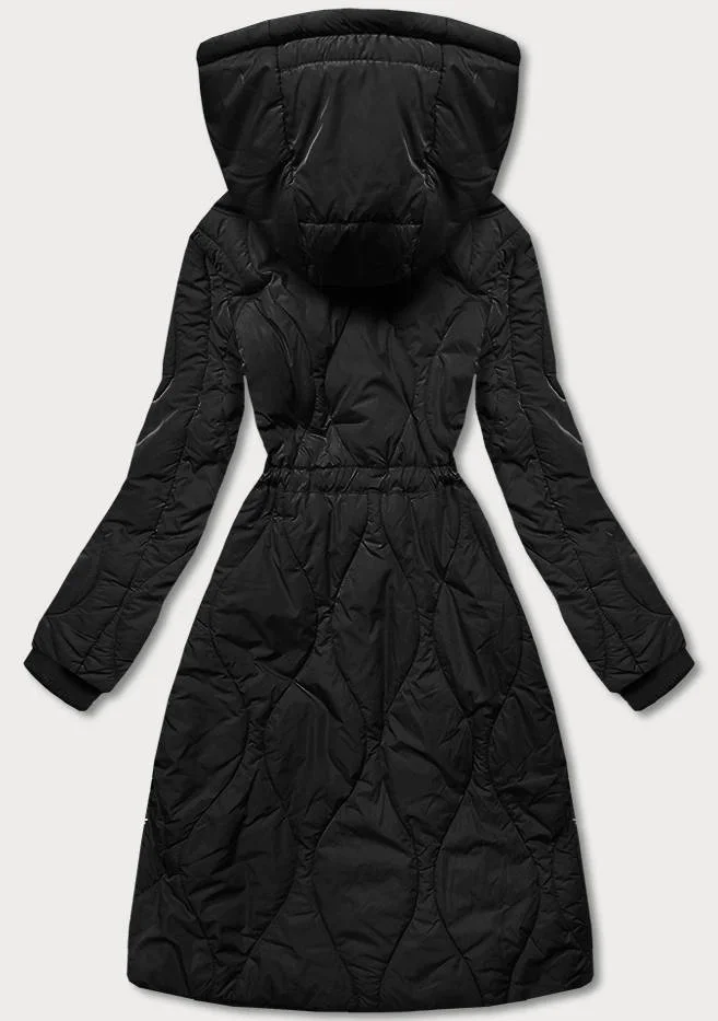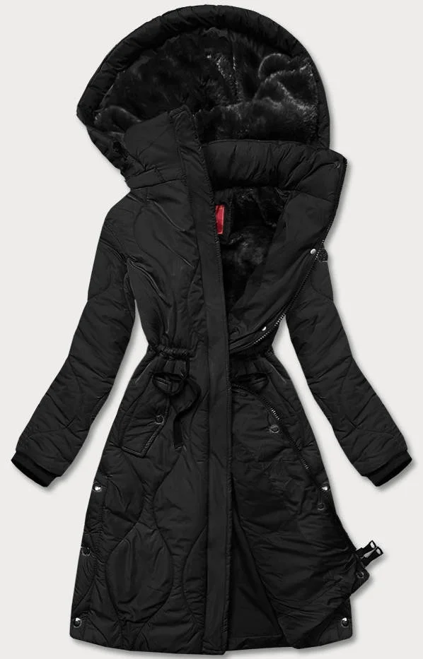 Černá dámská zimní bunda v délce ke kolenům (m-21601)